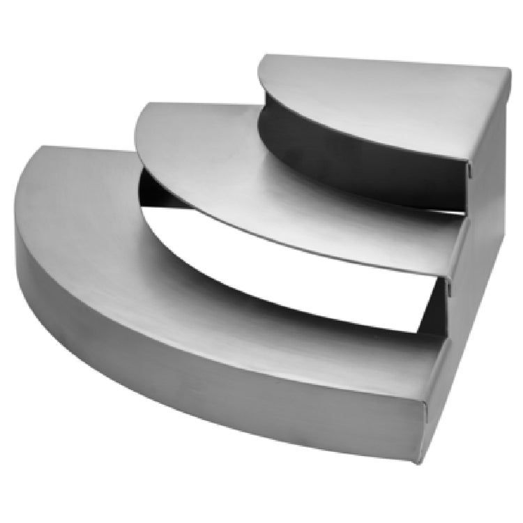 The Spring USA SK13701141 Skyra™ Corner Step Riser is a precision-engineered product measuring 10"L x 10"W x 3-9/16"H, crafted from high-quality stainless steel. This stock item is designed to enhance the presentation and accessibility of items in various professional settings such as restaurants, hotels, and catering events. The compact dimensions make it suitable for optimizing space on countertops or buffet displays, offering an innovative solution for showcasing culinary creations. Its stainless steel construction ensures durability and a sleek aesthetic that complements any decor while providing resistance to corrosion and wear, essential for high-traffic environments. Ideal for chefs and hospitality professionals seeking to elevate their service and presentation standards, the Skyra™ Corner Step Riser offers a unique balance of form and function. This product's straightforward, robust design allows for easy integration into existing setups, enhancing visual appeal and operational efficiency. Whether used for elevating dishes, displaying promotional items, or organizing space, this riser is a versatile addition to any establishment aiming for excellence in presentation and service delivery. Its practical design and reliable construction make it a standout choice for professionals who value quality and aesthetic appeal, providing a competitive edge in the demanding food service industry.