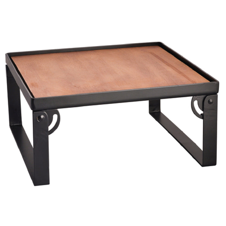 The Spring USA SK9434 Skyra™ Industrial Riser is crafted with precision for the modern culinary landscape, measuring 15-1/2 inches in length, 15-1/2 inches in width, and 6 inches in height, forming a perfectly balanced square that enhances presentation possibilities. This industrial riser is characterized by its hardwood top, which provides both durability and aesthetics, making it a standout feature for any buffet or catering setup. Complementing the top are matte black stainless steel folding legs, offering a sleek yet sturdy foundation, ensuring stability and ease of storage when not in use. As a stock item, it caters to the immediate needs of businesses across various segments, from high-end restaurants to banquet halls and hospitality venues, where sophistication and functionality are paramount. The Spring USA SK9434 Skyra™ Industrial Riser not only elevates dishes but also adds a touch of industrial elegance to any setting, bridging the gap between practical utility and stylish design.