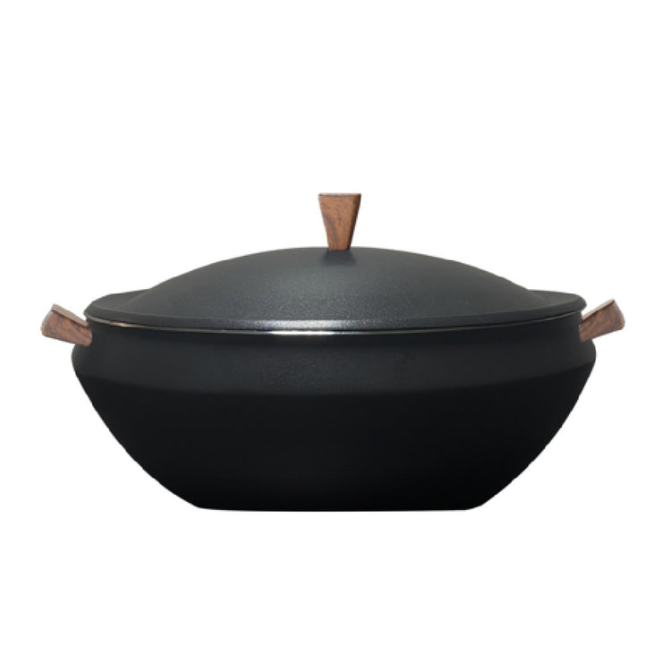 The Spring USA WT-14581180 ROCKWOOD Buffet Server is a versatile and elegant addition to any buffet setting, offering a perfect blend of aesthetics and functionality. Measuring 10 inches in diameter and 5.5 inches in height, this round server boasts a generous capacity of 2.5 quarts. The induction titanium matte finish not only adds a touch of sophistication but also ensures durability and resistance to daily wear and tear. Its stainless steel insert is food-safe and non-porous, providing a hygienic surface that is easy to clean and maintain. The hydro-dip woodgrain coated handles enhance its visual appeal while providing a comfortable grip. This buffet server is specifically designed for handwashing to preserve its unique finish, although the stainless steel insert is dishwasher safe for added convenience. Ideal for use in commercial dining settings, catering events, or upscale gatherings, the Spring USA WT-14581180 ROCKWOOD Buffet Server combines practicality with a sleek, modern design, making it an indispensable tool for professionals who value both performance and style in their serving equipment.