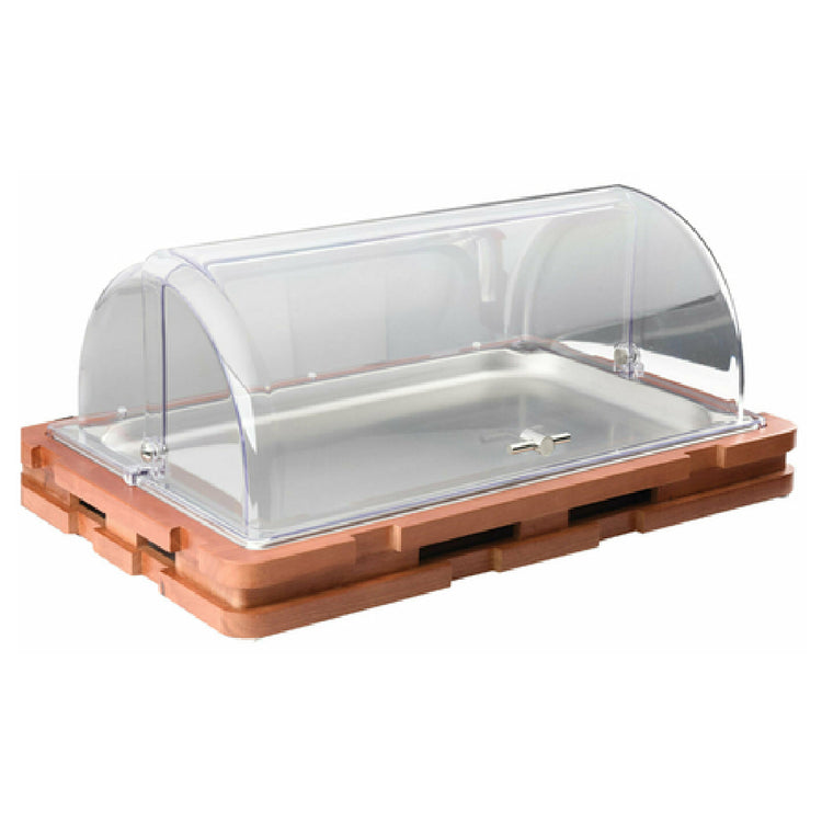 The Spring USA XC2201 XCESSories® Wowers Cold Buffet Display/Chafing Dish is an expertly designed piece, perfect for elevating food presentation in various settings. With dimensions of 22-3/4"W x 15"D x 9-3/4"H, this oblong display is crafted to provide ample space for showcasing cold dishes, making it an ideal choice for catering events, hotels, and restaurants looking to impress their guests. The distinctive curved glass lid not only adds an elegant touch but also helps maintain the freshness and visual appeal of the displayed items. The wood base complements the sophisticated design, providing a solid and attractive foundation that seamlessly blends with any décor theme. As a stock item, the Spring USA XC2201 is readily available, ensuring you can meet demand with ease. This cold buffet display/chafing dish offers a unique value proposition by combining form and function, catering to the specific needs of diverse market segments within the hospitality industry. Its thoughtful construction is tailored to enhance both the aesthetic and practical aspects of food presentation, making it an invaluable asset for professionals aiming to deliver exceptional dining experiences.