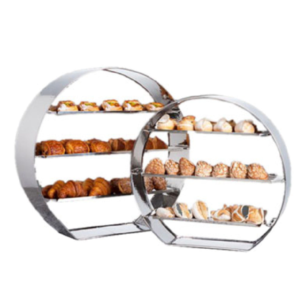 The Spring USA XC3255 XCESSories® Display Wheel is a meticulously crafted piece engineered for versatile display needs, measuring 30-1/4 inches in width and 29-1/8 inches in height, with a 7-5/8 inch frame. This display wheel is equipped with three removable hook-on trays or shelves, offering flexibility and ease of use for different presentation requirements. Constructed from high-quality stainless steel, it boasts a durable, hammered finish, adding both aesthetic appeal and resilience, making it a standout choice for various market segments within the display industry. Its design caters to spaces that demand both functionality and style, whether it’s for retail environments, exhibitions, or culinary presentations. The removable trays provide adaptability, allowing users to tailor the display to specific items or themes efficiently. Spring USA's commitment to quality is evident in the XC3255’s robust construction, ensuring long-lasting performance and value. As a stock item, this display wheel is readily available for businesses seeking reliable and attractive display solutions. With its combination of practical features and a polished appearance, the Spring USA XC3255 XCESSories® Display Wheel holds a unique position in the market as a versatile and reliable display option.
