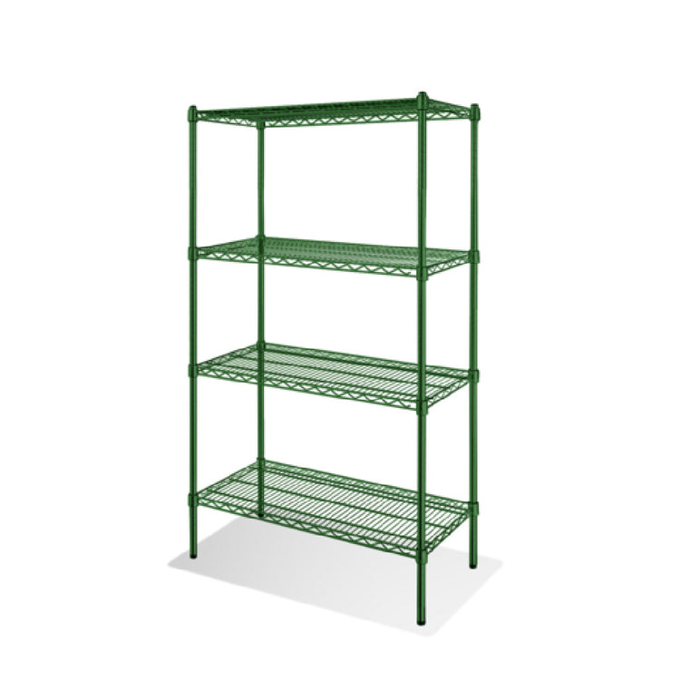 Steel Works Stainless, SW1454G-4, Heavy Duty Wire Shelving Unit, 4-tier, 14"x 54", 800 lbs. capacity, includes: (4) shelves, (4) posts, clips, epoxy coated, green, NSF (10 year warranty)