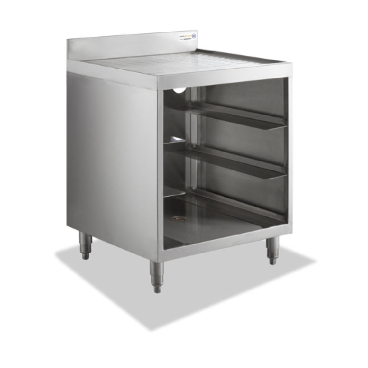 Steel Works Stainless, SWGRSU-2124-CT, Underbar Glass Storage Unit, drainboard top, 24" x 21" x 32"H, Open Front Base, 304 stainless steel construction, Holds (3) 20" x 20"