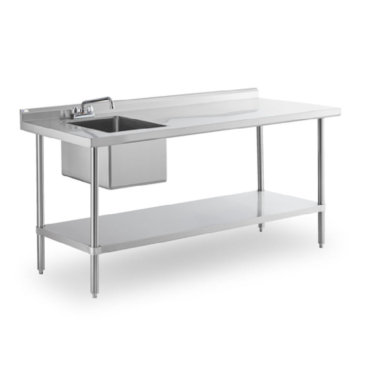 Steel Works Stainless SWSTM-3048WS-L-316 Sink Table 30" X 48" X 35-1/2"H With 2" Backsplash And 1/2" Marine Edges At 3 Sides 16ga/304 Stainless Steel