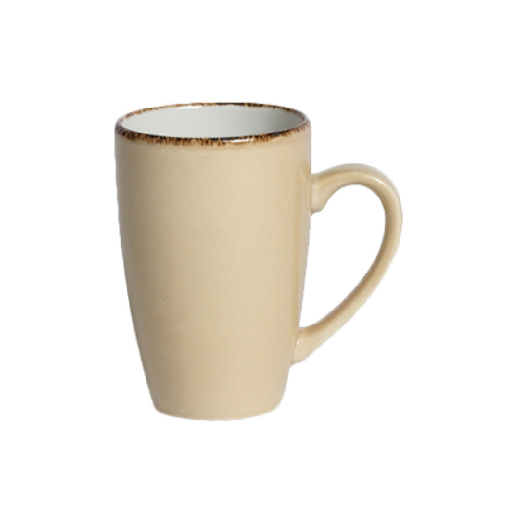 The Steelite 11200592 Quench Mug 10 oz. is an expertly crafted drinkware piece that combines functionality with elegant design, making it suitable for various market segments including hospitality, culinary, and home use. With dimensions of 4-1/4" x 3" x 4-3/8"H, this mug is thoughtfully designed to fit comfortably in the hand while offering ample volume for beverages. The incorporation of a handle enhances ease of use, making it practical for everyday applications. This mug is fully vitrified, contributing to its durability and strength, ensuring it withstands frequent use in demanding environments. The hand-finished quality highlights its craftsmanship, while the textured reactive glaze provides a unique and visually appealing finish. Steelite Performance technology adds another layer of resilience, making it freezer, microwave, and dishwasher safe, thus simplifying maintenance and broadening its usability across different settings. Part of the Terramesa Wheat collection, this stock item is conveniently packed by 2 dozen per case, catering to bulk purchasing needs for commercial settings. The combination of aesthetic appeal and robust construction makes the Steelite 11200592 Quench Mug a valuable addition to any setting where quality drinkware is essential.