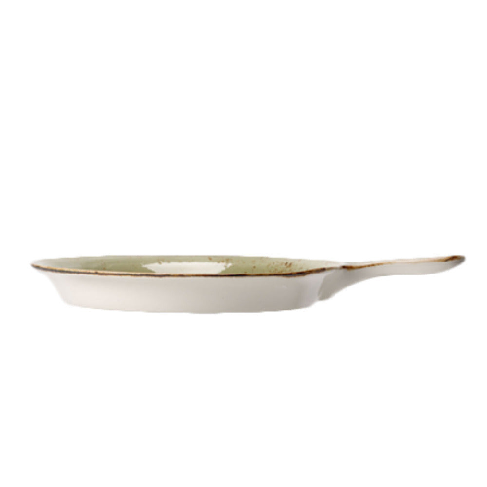The Steelite 11310866 Presentation Pan is a versatile and robust culinary item designed for both professional kitchens and home cooks seeking durable and multifunctional cookware. With a generous capacity of 33-1/2 oz. and a 10-inch diameter, this round presentation pan is an ideal choice for serving a variety of dishes. Crafted from vitrified ceramic, it exemplifies Steelite Performance with its ability to withstand the rigors of frequent use. The pan is remarkably adaptable, being freezer, microwave, and dishwasher safe, which makes it convenient for a range of cooking and storage applications. This product is backed by a lifetime edge chip warranty, ensuring long-lasting durability and customer confidence in its resilience. The Craft Green finish adds a touch of elegance, complementing any presentation style. Sold in cases of six, it is a stock item, readily available for immediate use. The Steelite 11310866 Presentation Pan is particularly valuable in commercial food service environments, offering reliability and ease of use, while also being an excellent addition to household kitchens that demand professional quality and aesthetics. Whether for serving, cooking, or storage, this presentation pan meets diverse culinary needs with style and functionality.