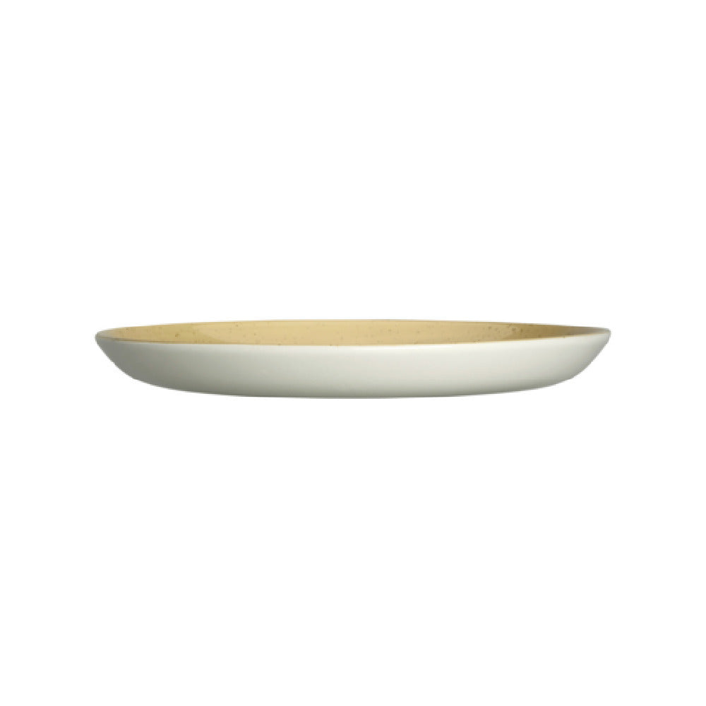 The Steelite 12160634 Coupe Plate 10" Round is an expertly designed piece of dinnerware, crafted for versatility and durability across various segments within the hospitality industry. Manufactured by Steelite International, this coupe plate measures 10 inches in diameter, making it ideal for serving diverse culinary creations. It is constructed from alumina vitrified material, ensuring superior strength and resilience, which is essential for high-demand environments such as restaurants and catering events. The plate's alumina vitrification enhances its durability, making it resistant to chipping and scratching, which is a crucial feature for maintaining a pristine appearance over time. The vibrant yellow hue of this plate, part of the Steelite Performance range, aligns with the Amari Dijon collection, adding a touch of elegance and warmth to any table setting. Sold in case quantities of 12, it is a stock item that meets the needs of establishments requiring consistent and reliable access to quality dinnerware. The Steelite 12160634 Coupe Plate embodies a blend of aesthetic appeal and functional excellence, making it a valuable addition to any dining experience, providing both style and substance to elevate food presentation.