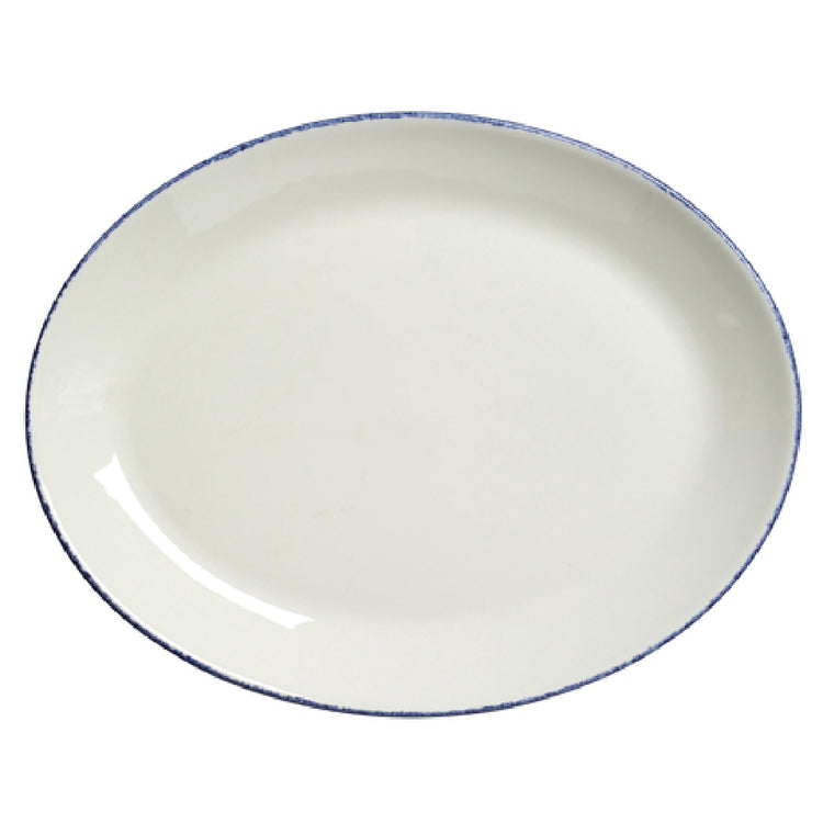 The Steelite 17100142 Platter 12"L X 9-3/8"W Oval is an exceptional piece expertly crafted for various culinary environments. With its precise dimensions of 12 inches in length and 9-3/8 inches in width, this oval platter provides ample surface area, making it ideal for presenting an array of dishes. Constructed from high-quality vitrified china, it exemplifies durability and resistance to chipping, ensuring longevity even under rigorous use. The platter features a coupe design, offering a sleek, modern aesthetic that complements any dining setting. As part of the Steelite Performance collection, it delivers superior performance qualities, including thermal shock resistance and excellent heat retention, essential for keeping dishes at optimal temperatures. The Blue Dapple finish adds a touch of elegance and sophistication, making it suitable for both casual and fine dining experiences. This product is a stock item, packaged by the dozen, catering to the needs of restaurants, hotels, and catering services that require reliable and stylish dishware in bulk quantities. The Steelite 17100142 Platter holds significant value in the food service industry, combining aesthetic appeal with practical features for a versatile serving solution.