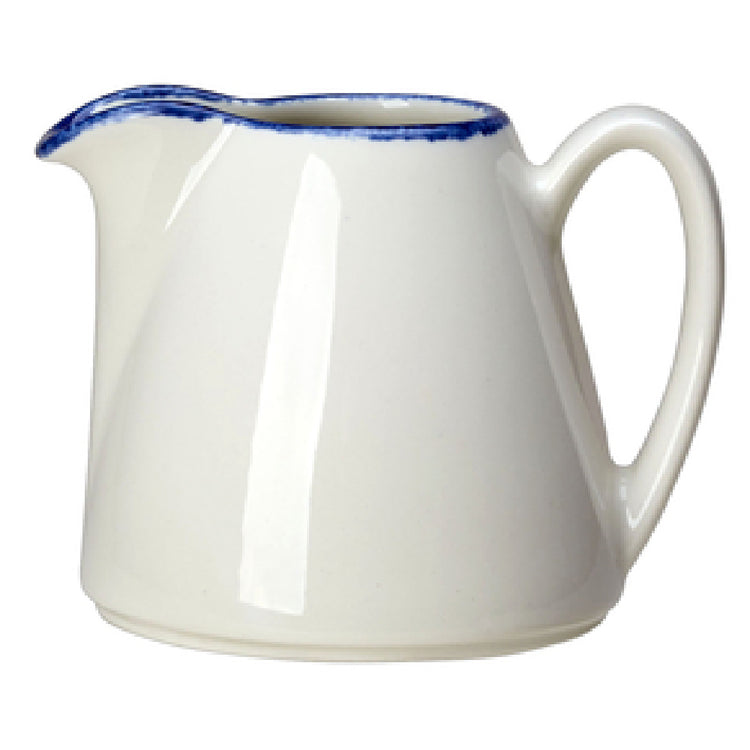 The Steelite 1710X0030 Jug 5 Oz. With Handle is a versatile piece crafted from vitrified china, offering exceptional durability and performance for varied market segments, including hospitality and catering. This jug, part of the Steelite Performance range, ensures robustness and longevity, underscored by its lifetime edge chip warranty. Its unique Blue Dapple design adds a touch of elegance to any table setting, making it suitable for both formal and casual dining environments. With a 5-ounce capacity, it is ideal for serving cream, milk, or sauces, providing functionality in a compact form. The jug is designed with convenience in mind; it is safe for use in the freezer, microwave, and dishwasher, allowing for easy handling and maintenance in high-paced environments. This non-stock item is packed by the dozen, ensuring that large-volume needs are met efficiently. The inclusion of a handle enhances usability, ensuring a comfortable grip and precise pouring. The Steelite 1710X0030 Jug 5 Oz. With Handle is a strategic addition to any foodservice operation, combining practical features with aesthetic appeal, tailored to elevate service and customer experience across various settings in the industry.