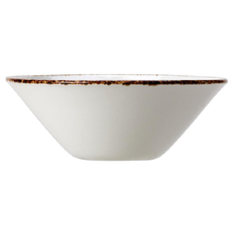 The Steelite 17140595 Essence Bowl 5 Oz. 4-1/2" Dia. X 1-5/8"H is a meticulously crafted piece, tailored for the discerning needs of the hospitality and dining industries. Featuring a compact design, this round bowl boasts a diameter of 4-1/2 inches and a height of 1-5/8 inches, making it an ideal choice for serving precise portions of sauces, appetizers, or desserts. Constructed from vitrified china, it ensures durability and resistance to chipping, a hallmark of Steelite Performance products. The Brown Dapple design adds an elegant touch, enhancing the visual appeal of any table setting. Although it is a non-stock item, its availability in packs of one dozen caters to the varied requirements of restaurants, cafes, and catering services. The Steelite 17140595 Essence Bowl stands out in its category, not just for its impeccable build but also for its capacity to blend aesthetic grace with functional excellence. Designed for professionals who value quality and presentation, this bowl offers a reliable solution for establishments seeking to elevate their dining experience. Its robust construction and elegant design make it a favored choice across multiple segments of the food service industry.