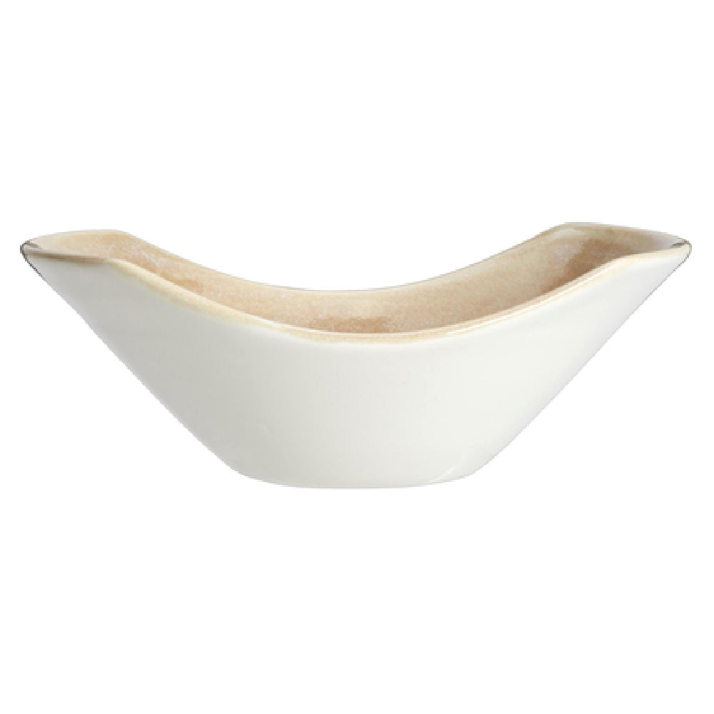 The Steelite 17760574 Scoop Bowl is an expertly crafted ceramic piece designed to meet the rigorous demands of various segments within the food service industry. With a capacity of 9 oz., this bowl measures 6-1/2"L x 2-3/8"H, featuring a distinct boat shape that adds a touch of elegance to any table setting. Its fully vitrified construction ensures durability and resistance to chipping, making it suitable for high-volume environments. The bowl is freezer, microwave, and dishwasher safe, which highlights its versatility and convenience for busy commercial kitchens. Finished in a sandstone hue, it belongs to the Steelite Performance line, known for its exceptional quality and innovative design. Part of the Revolution collection, this stock item is packed by the dozen, ensuring ample supply for restaurants, hotels, and catering services. The Steelite 17760574 Scoop Bowl combines aesthetic appeal with practical functionality, making it an ideal choice for establishments that require reliable and stylish serving solutions. Whether enhancing a formal dining experience or offering a durable option for casual eateries, this scoop bowl stands as a testament to Steelite's commitment to performance and design excellence in the culinary world.