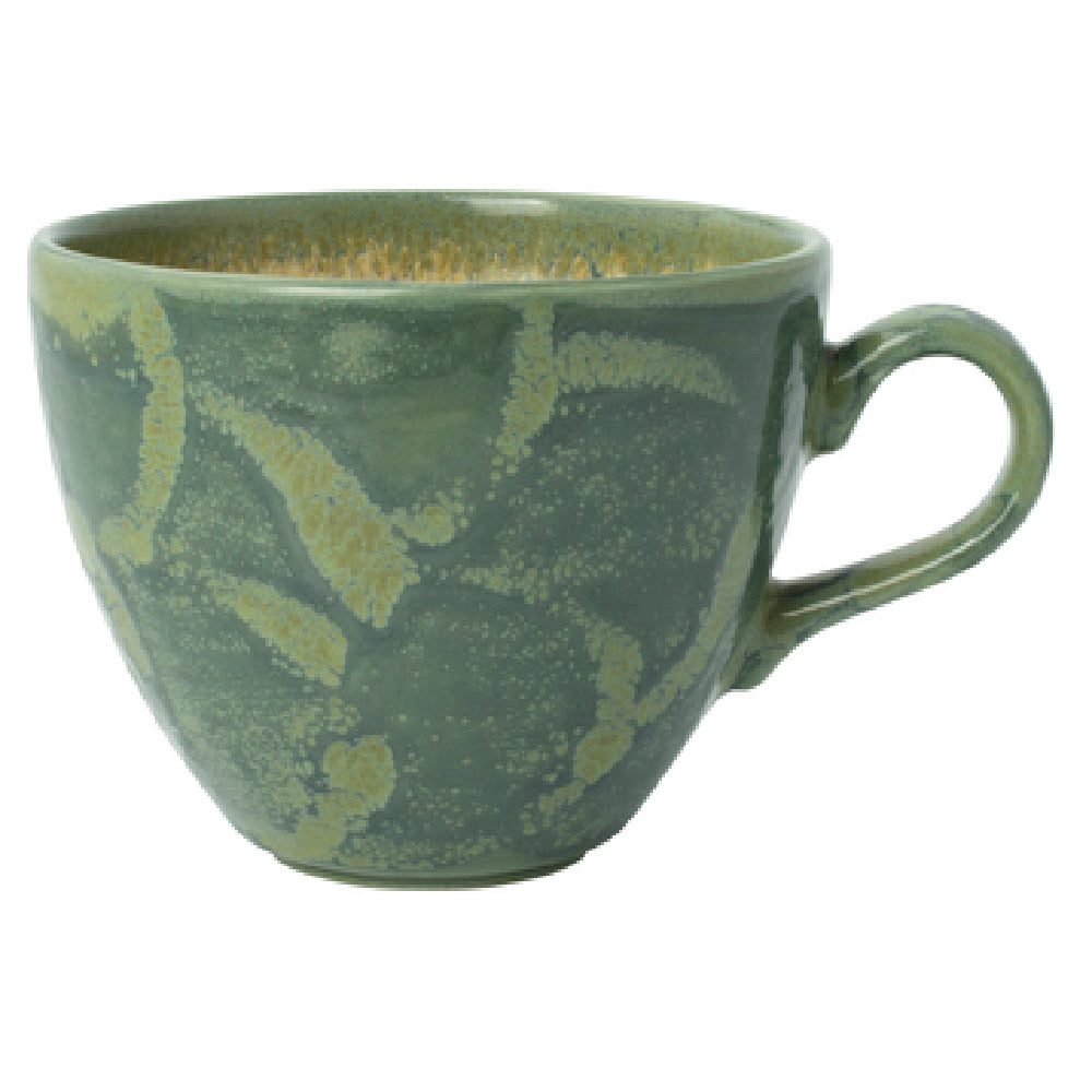 The Steelite 1781X0019 Cup 12 Oz. 5-1/4" X 3-1/4" exemplifies the seamless blend of durability and elegance, essential for diverse market segments including hospitality and food service industries. This ceramic cup is part of the Steelite Performance line, known for its robust construction and aesthetic appeal. With a capacity of 12 ounces and dimensions measuring 5-1/4 inches by 3-1/4 inches, it provides ample space for a variety of beverages, from comforting coffees to refreshing teas. The cup is fully vitrified, ensuring it is both durable and resistant to water absorption, making it freezer, microwave, and dishwasher safe—ideal for fast-paced environments where convenience and reliability are paramount. The Aurora Revolution Jade design adds a touch of sophistication, making it suitable for upscale dining settings. As a made-to-order item, it offers a degree of exclusivity, catering to establishments that prioritize unique tableware. Packed by the dozen, this cup is a practical choice for venues seeking to maintain consistency in their service ware. The Steelite 1781X0019 Cup stands as a testament to quality craftsmanship, meeting the rigorous demands of professional use while enhancing the visual appeal of any beverage presentation.