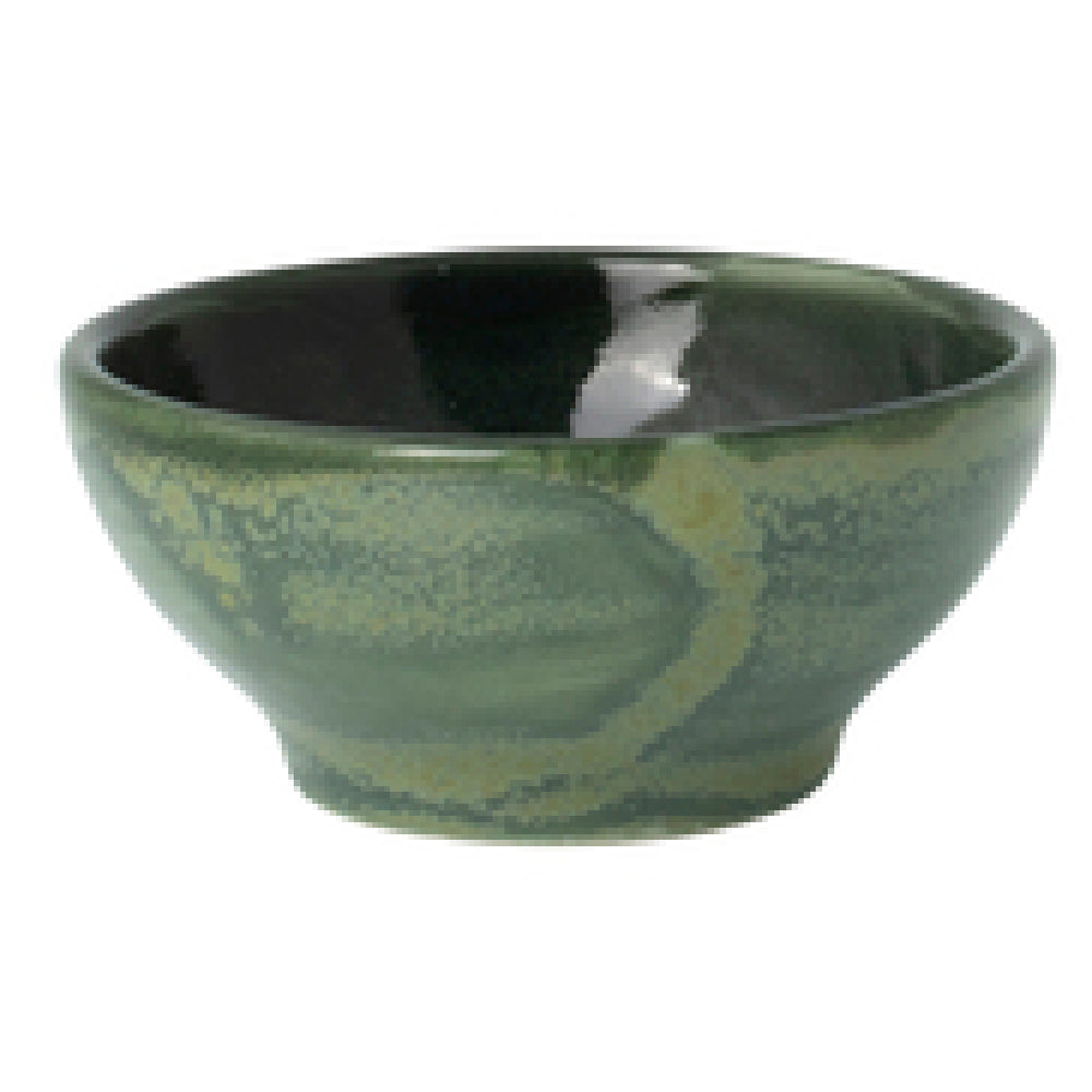 The Steelite 17830538 Bowl is a meticulously crafted ceramic piece designed for both elegance and durability. With a capacity of 2-1/4 oz., it is perfectly sized for serving small portions, making it ideal for appetizers, desserts, and condiments. Its round form with a tulip design adds a touch of sophistication to any table setting. The bowl measures 2-3/4 inches in diameter and stands at 1-1/4 inches in height, making it a compact yet practical addition to dining collections. Engineered for convenience and performance, it is fully vitrified, ensuring resistance to chipping and maintaining its pristine appearance over time. This bowl is versatile for use in various settings, being both freezer and microwave safe, allowing for ease of preparation and serving. Additionally, it is dishwasher safe, facilitating effortless cleaning and maintenance. The Steelite Performance line, known for its robustness, assures users of its lasting quality. Featuring the Aurora Vesuvius Burnt Emerald color, it adds a unique aesthetic touch, making it a standout piece in any culinary presentation. Packed by the dozen, it is suitable for upscale restaurants, catering services, or even home use where quality and style are paramount.