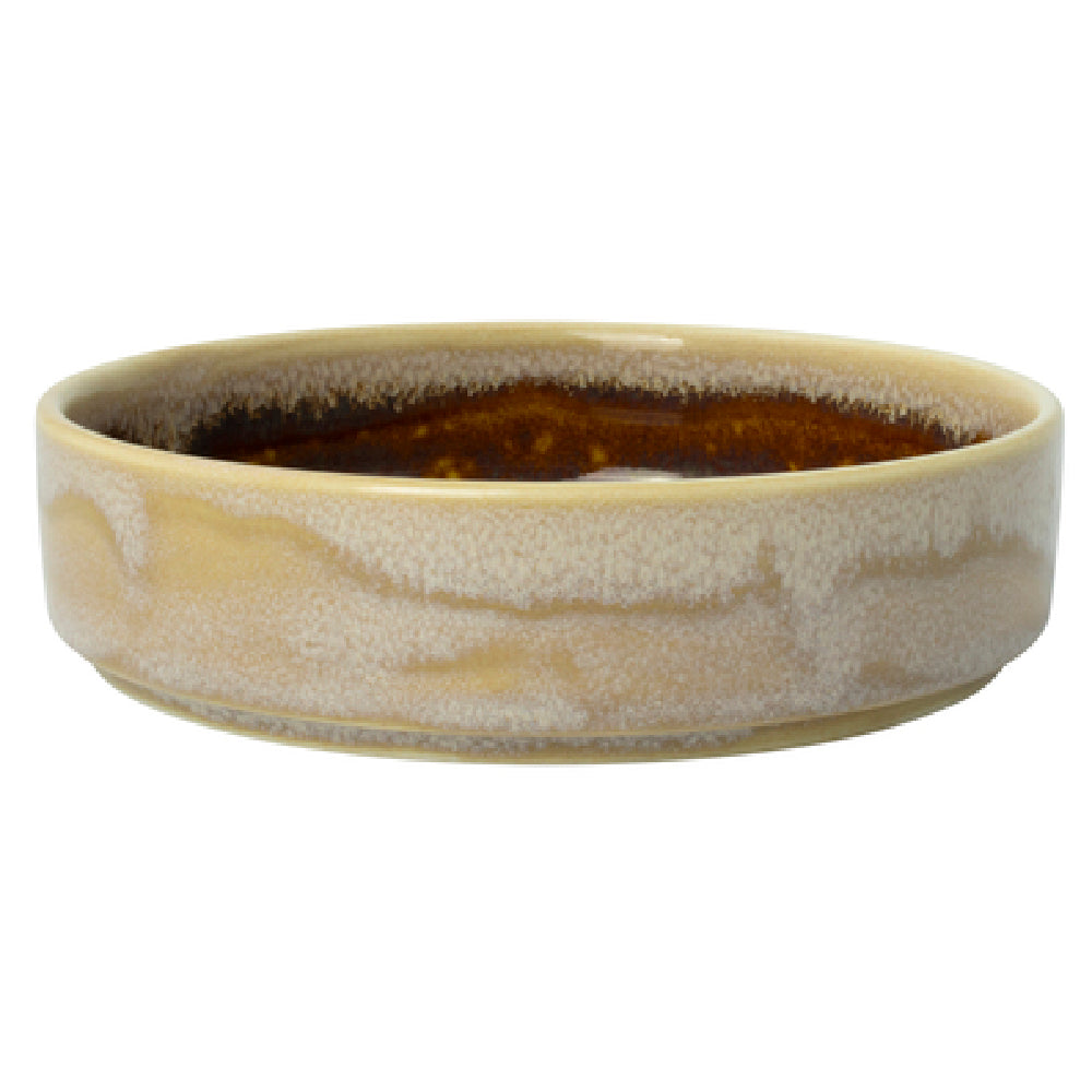 The Steelite 17840560 Tray 21 Oz. 6-1/2" Dia. X 1-1/2"H is a versatile ceramic piece designed to meet the rigorous demands of the food service industry. Its stacking design maximizes space efficiency, making it an ideal choice for busy kitchens requiring practical storage solutions. With a diameter of 6-1/2 inches and a height of 1-1/2 inches, this tray provides a substantial capacity of 21 oz., catering to a variety of serving needs. The tray is crafted from fully vitrified ceramic, enhancing its durability and resistance to chipping and cracking, which is vital for high-volume environments. Additionally, it is freezer, microwave, and dishwasher safe, offering seamless transitions between storage, heating, and cleaning processes. The Steelite Performance line ensures reliability and robust performance, while the Aurora Vesuvius Amber aesthetic adds an elegant touch to any table setting. Packed by the dozen, the Steelite 17840560 Tray is an efficient and stylish solution for restaurants, catering services, and hospitality venues that require both functionality and aesthetic appeal in their serveware.