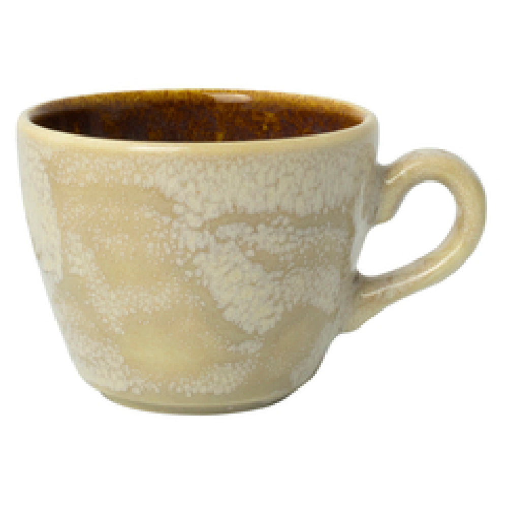 The Steelite 1784X0023 Cup 3 Oz. is a meticulously crafted ceramic cup that meets the demands of both high-end restaurants and everyday dining establishments. With a diameter of 3-1/2 inches and a height of 2-1/8 inches, this cup is perfectly sized for serving espresso and other small servings. Its fully vitrified construction ensures durability and resistance to water absorption, making it a resilient choice for busy environments. The cup is designed to withstand the rigors of freezer, microwave, and dishwasher use, highlighting its versatility in various kitchen scenarios. The Steelite Performance range, to which this cup belongs, guarantees a high standard of quality that is synonymous with the brand. The Aurora Vesuvius Amber finish provides a unique aesthetic appeal, adding a touch of elegance to any table setting. As a made-to-order item, it offers exclusivity and customization possibilities for establishments seeking a distinctive look. Packed by the dozen, it is a practical choice for large-scale operations, ensuring consistency and style across service. Ideal for cafes, hotels, and catering services, the Steelite 1784X0023 Cup 3 Oz. represents a perfect blend of functionality, durability, and visual appeal.