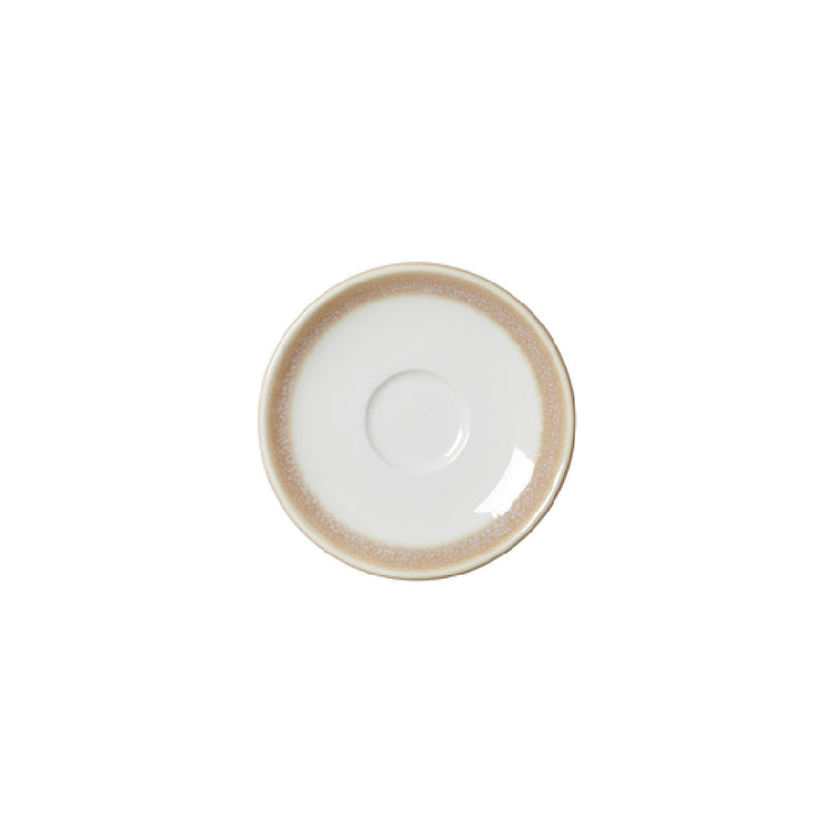 The Steelite 1791X0043 Saucer Liv 5" Dia. Round is a meticulously crafted piece of dinnerware designed to complement a variety of professional dining settings. With a diameter of 5 inches, this round saucer seamlessly fits Steelite model numbers X0017, X0023, and X0010, ensuring versatile compatibility within the Steelite Performance range. Constructed from fully vitrified ceramic, the saucer is engineered for durability, making it an ideal choice for high-traffic environments such as restaurants, hotels, and catering services. Its vitrified nature enhances its resistance to moisture absorption, contributing to its longevity and maintaining its pristine condition over time. The saucer is designed to withstand extreme temperatures, being both freezer and microwave safe, thereby allowing for a wide range of culinary applications. It is also dishwasher safe, facilitating easy cleaning and maintenance. The lifetime edge chip warranty underscores Steelite's commitment to quality and durability. The Revolution Edge Sandstone finish adds an aesthetic appeal that complements modern and traditional table settings alike. As a non-stock item, it reflects exclusivity and attention to detail, tailored for establishments that prioritize both functionality and elegance. Packed by the dozen, the Steelite 1791X0043 is a practical and reliable choice for enhancing dining experiences.
