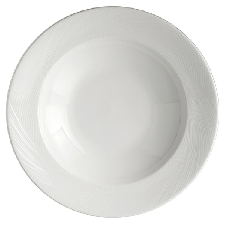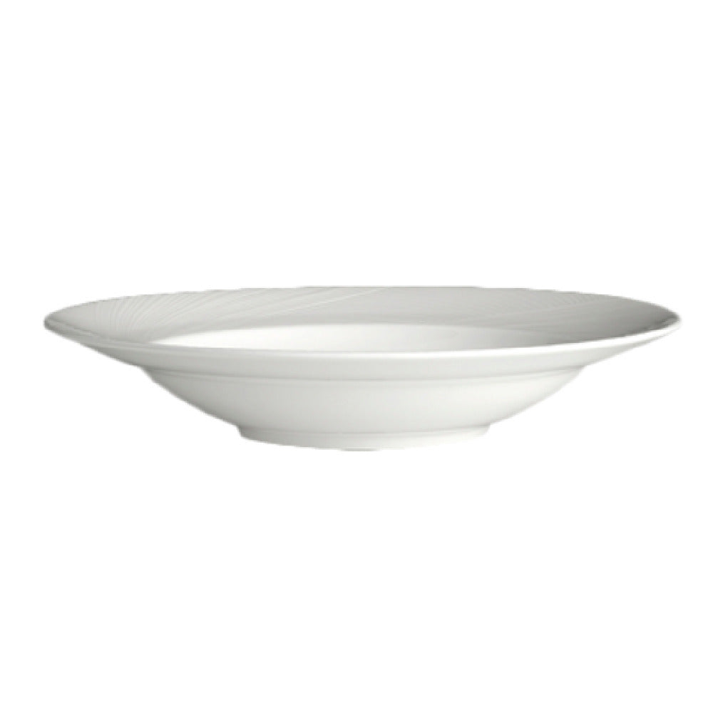 The Steelite 4411RF008 Soup Bowl is a meticulously crafted dining essential, with a precise dimension of 14 oz. capacity and a generous 9-1/2 inch diameter. This round bowl is distinguished by its elegantly embossed rim, adding an element of sophistication to any dining setting. Constructed from premium bone china, the bowl exhibits a delicate white hue, offering a timeless aesthetic that seamlessly complements a variety of tableware collections. The Foliobone Kord range underscores its durability and resilience, making it suitable for both high-end restaurants and casual dining environments. The Steelite 4411RF008's design prioritizes both form and function, providing a versatile option for serving soups and other liquid-based dishes. Packaged by 2 dozen per case, it is an ideal choice for businesses seeking quality and efficiency in bulk, catering to the needs of hotels, catering services, and fine dining establishments. This bowl is not just a product but a statement of quality and elegance, ensuring a memorable dining experience. Whether enhancing the ambiance of a luxurious banquet or supporting the fast-paced environment of a busy restaurant, the Steelite 4411RF008 Soup Bowl stands out as a reliable and aesthetically pleasing option in the culinary industry.