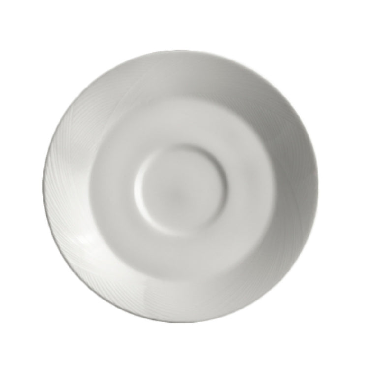 The Steelite 4411RF016 Saucer is a round dish with a diameter of 5-7/8 inches, crafted from high-quality bone china. This saucer is characterized by its elegant embossed rim and classic white color, which seamlessly complements any dining setting. As part of the Foliobone Kord collection, it is specifically designed to pair with items 4410RF013, 4410RF014, and 4410RF015, ensuring a cohesive and sophisticated table presentation. Ideal for use in upscale restaurants, hotels, and banquet halls, this saucer offers an understated yet refined aesthetic. The Steelite 4411RF016 is not only a stock item but is also efficiently packed in cases of three dozen, making it a practical choice for businesses requiring bulk quantities without sacrificing style. This product's durable construction and timeless design make it a valuable addition to any professional dining establishment, where quality and elegance are paramount. The bone china material provides a delicate appearance while ensuring the strength and resilience needed for high-volume service environments, making it suitable for a wide range of industry segments, from fine dining to hospitality events.