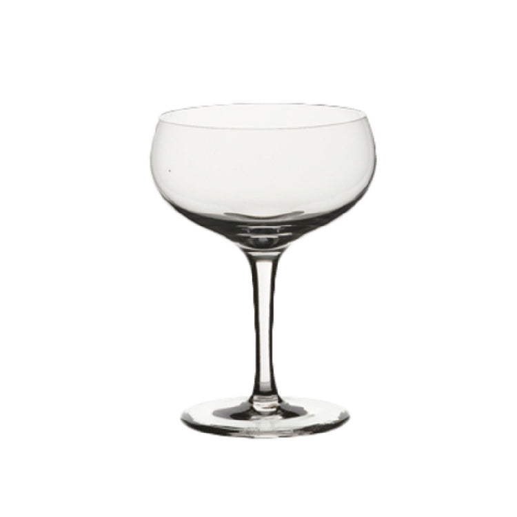 The Steelite 4854R352 Paris Champagne Glass 8 Oz. (H 5-1/8" M 3-5/8" T 3-3/8" B 2-7/8") Coupe is an elegantly designed glass, ideal for serving champagne with sophistication. This glass features a coupe shape, which is a classic style known for its wide and shallow bowl that allows for an enhanced sensory experience. With a capacity of 8 ounces, this glass is perfect for savoring champagne, allowing the bubbles to flourish. The dimensions—height 5-1/8 inches, maximum diameter 3-5/8 inches, top diameter 3-3/8 inches, and base diameter 2-7/8 inches—provide a balanced and stable structure. Part of the Minners Classic Cocktails collection, this stock item is available packed by 2 dozen per case, making it suitable for both high-volume catering events and intimate gatherings. The Steelite 4854R352 Paris Champagne Glass is ideal for hospitality settings that prioritize both functionality and aesthetic appeal, including upscale restaurants, elegant event venues, and exclusive cocktail bars. Its classic design also makes it a valuable addition for collectors and glassware enthusiasts who appreciate the combination of tradition and craftsmanship. This versatile glass stands out with its refined elegance and practicality, offering a timeless choice for any sophisticated setting.