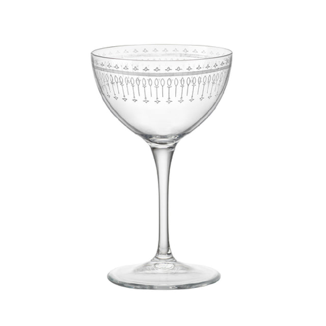 The Steelite 49214Q903 Martini Glass 8 Oz. is a meticulously crafted piece designed for elegance and functionality, suitable for various segments within the hospitality and dining industries. This glass has a height of 6-1/8 inches, with matching mouth, top, and base diameters of 3-3/4 inches, making it a balanced and aesthetically pleasing choice for serving martinis and other cocktails. Manufactured by Bormioli Rocco under the Novecento line, the glass embodies ART DECO style, catering to establishments that value design and sophistication. With its 8-ounce capacity, it is ideal for bars, restaurants, and catering services that aim to provide a refined drinking experience. Each case contains six of these expertly crafted glasses, ensuring that venues can maintain consistency in presentation and service. As a stock item, it is readily available for immediate needs, facilitating seamless integration into existing glassware collections. The meticulously designed stem provides stability and ease of handling, enhancing the overall user experience. The Steelite 49214Q903 Martini Glass embodies both style and practicality, making it an indispensable addition to any establishment that values quality glassware.