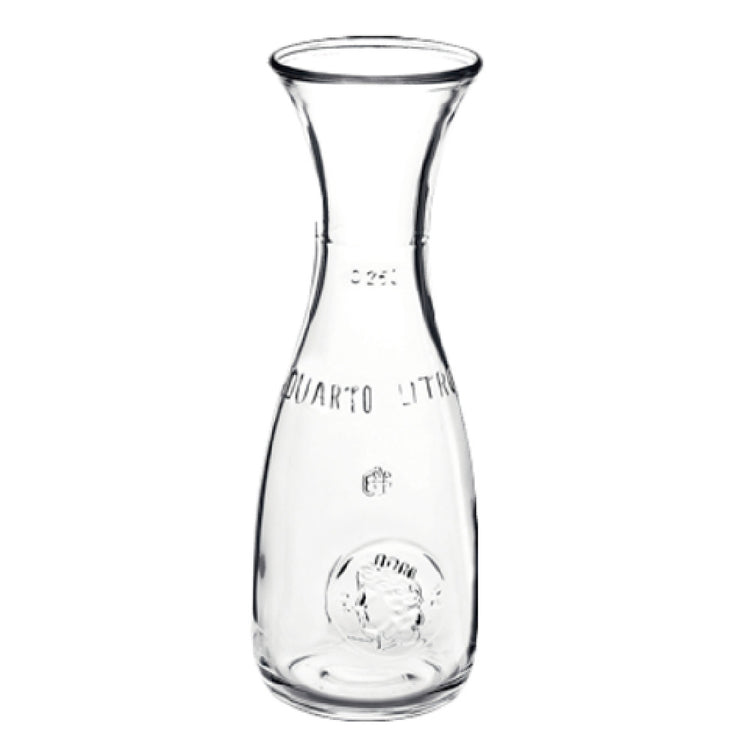 The Steelite 4929Q200 Carafe is a sophisticated glassware piece that combines elegance with functionality, making it an excellent choice for various market segments within the hospitality industry. With a total capacity of 10-1/2 ounces and an 8-1/2 ounce fill line, this carafe offers precise serving options, ideal for restaurants, cafes, and hotels that require stylish presentation and efficient portion control. This clear glass carafe measures 7-1/2 inches in height, with a middle and top diameter of 2-3/4 inches and a base diameter of 2-1/4 inches, providing a stable and aesthetically pleasing design that complements any table setting. Manufactured by Bormioli Rocco under the Misura range, this carafe reflects exceptional craftsmanship and quality, ensuring durability and longevity even with frequent use. As it is a stock item, it is readily available and packed by the dozen, offering convenience for bulk purchasing. The Steelite 4929Q200 Carafe is not only a practical choice for serving beverages but also adds a touch of sophistication to any dining experience, making it a valuable addition to any foodservice establishment seeking quality glassware solutions.