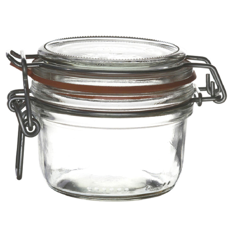 The Steelite 4949Q459 Jar 6 Oz. (4 Oz. Below Rim) is an exemplary piece from Steelite International, renowned for its clarity and sophisticated design. This jar features a height of 2-7/8 inches, a maximum diameter of 4-3/8 inches, a top diameter of 3-3/8 inches, and a base diameter of 2-1/2 inches, making it a versatile container for various storage needs. Crafted from high-quality clear glass, this jar provides a pristine view of its contents, ideal for both aesthetic display and practical use. It is equipped with a white gasket to ensure an airtight seal, preserving the freshness of the stored items. Manufactured by Bormioli Rocco, the jar belongs to the Fido line, known for its durability and timeless design. Being a stock item, it is conveniently packed by a dozen, catering to commercial environments that require a reliable and bulk storage solution. Whether used in culinary establishments, laboratories, or home kitchens, the Steelite 4949Q459 Jar combines functionality with elegance, making it a valuable asset across different market segments that demand precision and quality in glassware.