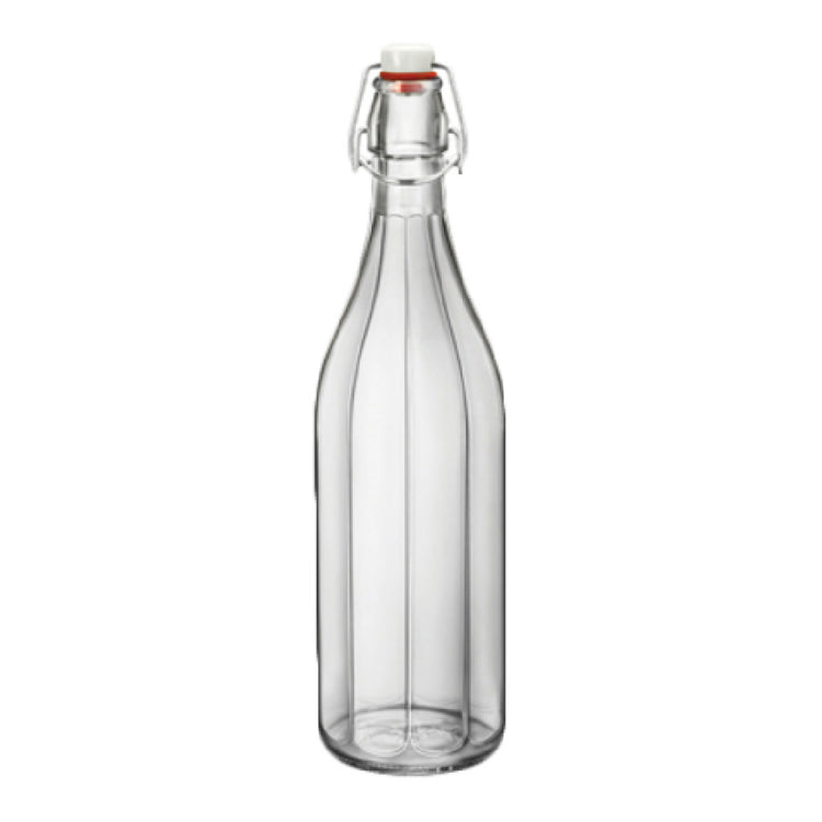 The Steelite 4952Q805 Swing Top Bottle 34 Oz. is a versatile glass container designed for a variety of applications across different segments within the beverage industry. Crafted by Bormioli Rocco, this bottle is part of the Oxford collection and comes as a stock item packed in cases of six. Its dimensions are meticulously designed with a height of 12-1/2 inches, a middle diameter of 3-1/2 inches, a top diameter of 1-1/2 inches, and a base diameter of 3-3/8 inches. This carefully considered sizing makes it suitable for diverse use cases, from storing homemade brews to serving as a chic water or juice container at dining establishments. The swing top feature ensures a secure seal, maintaining the freshness and flavor of the contents, which is particularly beneficial for users in the hospitality sector looking to enhance their service offerings with stylish and functional drinkware. Its transparent glass construction not only provides clarity but also adds a touch of elegance, making it a perfect fit for restaurant settings that value both aesthetics and practicality. This bottle's robust design and precise measurements reflect Steelite International's commitment to quality and functional utility in professional settings.