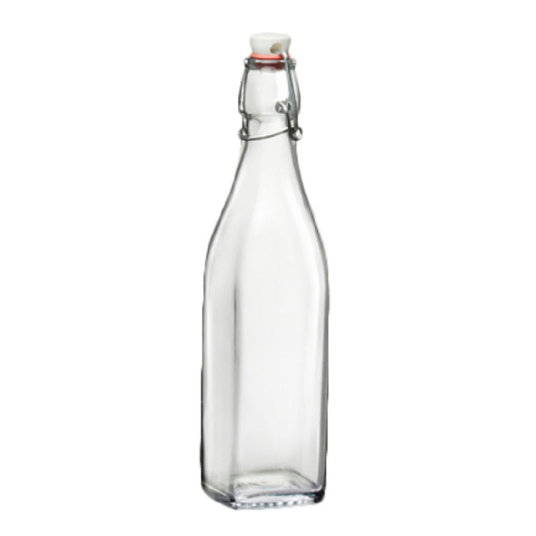The Steelite 4953Q675 Swing Top Bottle 17 oz. is a versatile glass container, offering a perfect blend of practicality and style, suitable for various industry segments. Manufactured by Bormioli Rocco, this bottle is meticulously crafted from tempered glass, ensuring enhanced durability and resistance to thermal shock, making it ideal for both commercial and home use. The bottle's dimensions are precisely specified: with a height of 10-5/8 inches, a middle diameter of 3 inches, a top diameter of 1-1/2 inches, and a base diameter of 2-3/4 inches, it is designed to fit comfortably in hand while maximizing storage efficiency. The swing top closure provides a secure sealing mechanism, maintaining the freshness of the contents, which is particularly beneficial for restaurants, bars, and catering services that require reliable storage solutions for beverages, sauces, or dressings. Packed by the dozen, this bottle is convenient for bulk purchasing and replenishing stock with ease. The Steelite 4953Q675 is a stock item, indicating consistent availability, which is crucial for businesses that need reliable supplies. Its combination of design, durability, and functionality makes it a valuable addition to any setting that demands both aesthetic appeal and practical utility.