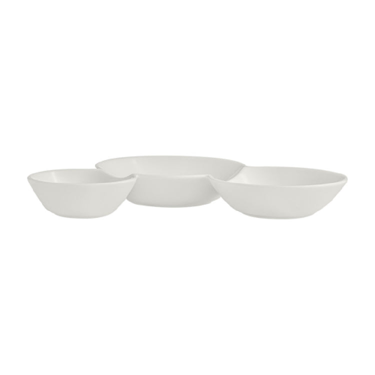 Steelite International, 51109ST3265, 3 Compartments Gourmet Sauce Dish, 7.0 oz., 7.125" X 1.0", White Album, Rene ozorio, Unique, Fine China, Contemporary Culinary Accessories In Fine China (Stock Item) (Packed By: 1 Dozen)