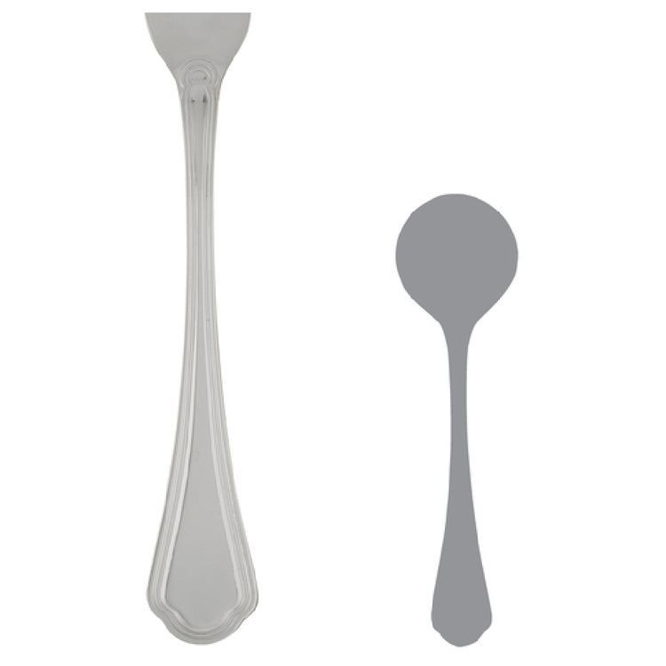 The Steelite 5307S002 Soup Spoon 7" Round Bowl is meticulously crafted for both elegance and functionality, making it a preferred choice across various dining settings. This soup spoon is constructed from 18/10 stainless steel, ensuring exceptional durability and resistance to corrosion, while also providing a sophisticated, polished finish. Measuring 7 inches in length, the spoon features a round bowl that is perfectly shaped to enhance the dining experience, effortlessly accommodating a satisfying portion of soup. Part of the Leopardi collection by WNK, this soup spoon combines timeless design with modern utility, making it suitable for high-end restaurants, catering services, and everyday dining. Its high-quality construction guarantees longevity and reliability, making it a valuable addition to any cutlery set. As a stock item from Steelite International, this soup spoon is readily available for businesses seeking to upgrade their tableware with a product that seamlessly blends aesthetic appeal with top-tier performance. The Steelite 5307S002 is an exemplary piece of flatware that meets the rigorous demands of the hospitality industry while elevating the dining experience for guests, showcasing a harmonious balance of form and function.