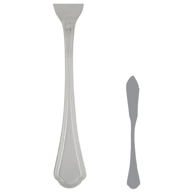 Steelite 5307S047 Butter Spreader 6" 13/0 Stainless Steel is a meticulously crafted tool designed for precision and durability in culinary settings. Measuring 6 inches, this butter spreader is an essential piece for any kitchen, offering a perfect balance between utility and elegant design. Made from 13/0 stainless steel, it ensures robust performance while resisting rust and corrosion, making it ideal for frequent use in high-demand environments. The spreader's composition is particularly suited for food service applications, where longevity and ease of maintenance are paramount. Part of the WNK Leopardi collection, this butter spreader boasts a classic aesthetic that complements a variety of table settings, from casual to fine dining. As a stock item from Steelite International, it reflects the company’s commitment to quality and innovation. This product serves various market segments, including restaurants, hotels, and catering services, where the seamless blend of functionality and style is a valued asset. The Steelite 5307S047 Butter Spreader stands as a testament to superior craftsmanship and design, offering a reliable solution for spreading tasks, enhancing the dining experience through its sleek and sturdy construction.