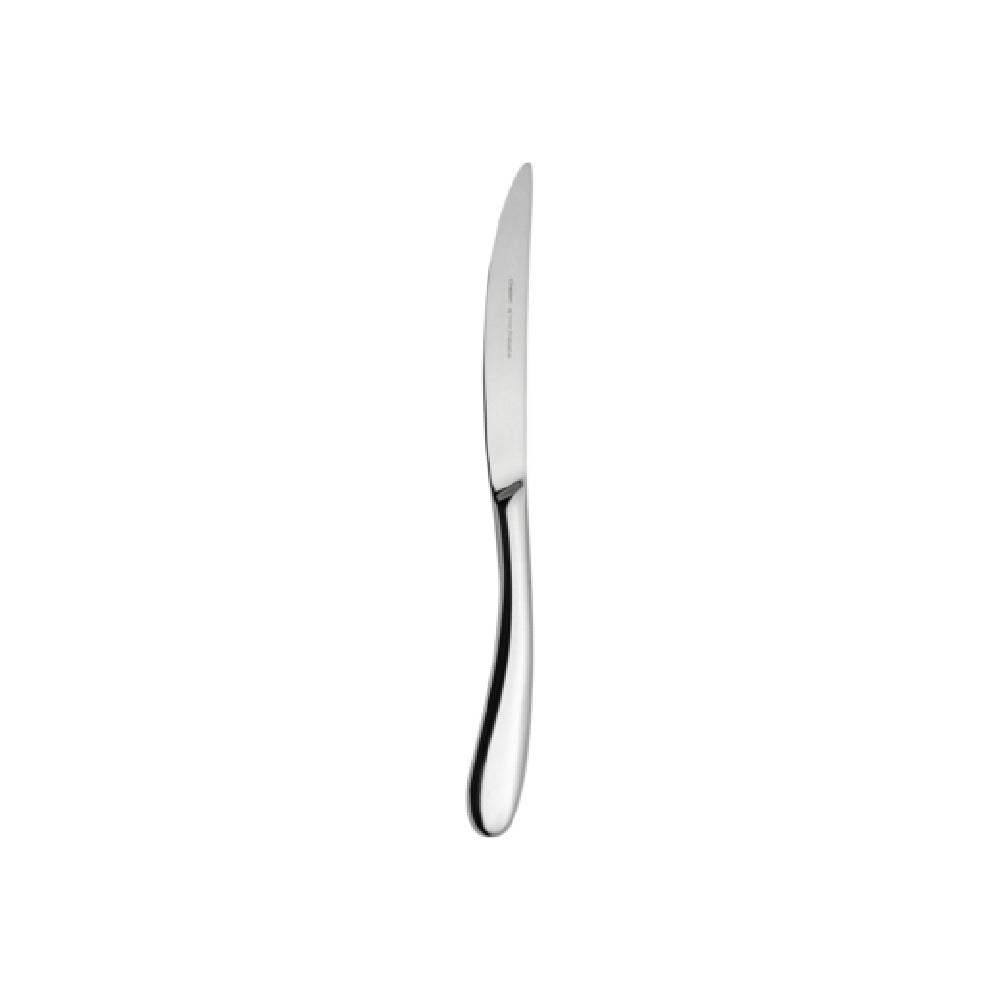 The Steelite 5309S044 Table Knife 9-1/2" Long Heavy Solid Handle is a meticulously crafted cutlery piece designed for various dining environments, from upscale restaurants to casual eateries. It features a substantial 9-1/2" length, providing a balanced and comfortable grip for users. The knife is constructed from high-quality 13/0 stainless steel, renowned for its durability and resistance to corrosion, making it a reliable and long-lasting choice for frequent use. The heavy solid handle enhances its sturdiness and gives it a premium feel, catering to the aesthetic preferences of fine dining establishments. The mirror-polished finish adds a touch of elegance, making it a visually appealing addition to any table setting. Part of the WNK Ovation collection, this table knife is a stock item, ensuring easy availability for replenishment in busy food service operations. Its universal design seamlessly fits into various themed settings, offering versatility for operators. This Steelite table knife is a practical and sophisticated selection for those seeking a combination of functionality and style in their cutlery, suitable for a range of market segments within the foodservice industry.