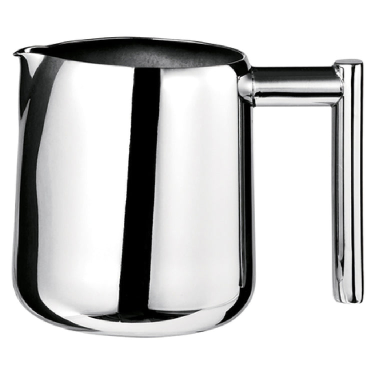 The Steelite 53601S137 Milk Jug is a precisely engineered drinkware item, distinguished by its 9 oz. capacity and constructed from high-quality 18/10 stainless steel. Measuring 4-3/8 inches in length, 2-7/8 inches in width, and 3 inches in height, this milk jug showcases a sleek mirror finish that enhances its aesthetic appeal. The product's single-wall design is part of the WNK Diva collection, emphasizing a modern elegance suitable for diverse hospitality environments. Its sturdy stainless-steel build ensures durability and resistance to corrosion, making it a practical choice for both high-volume commercial settings and intimate dining experiences. As a stock item, it is readily available for immediate use, catering to the needs of restaurants, cafes, and catering services. The Steelite 53601S137 Milk Jug combines functionality with style, providing a refined solution for serving milk or cream in any professional or domestic setting. Its compact size and polished finish offer versatility and a touch of sophistication to the table service, making it a valuable addition to any establishment aiming to deliver an elevated customer experience. Packed individually, this milk jug is designed for convenience and efficient inventory management.