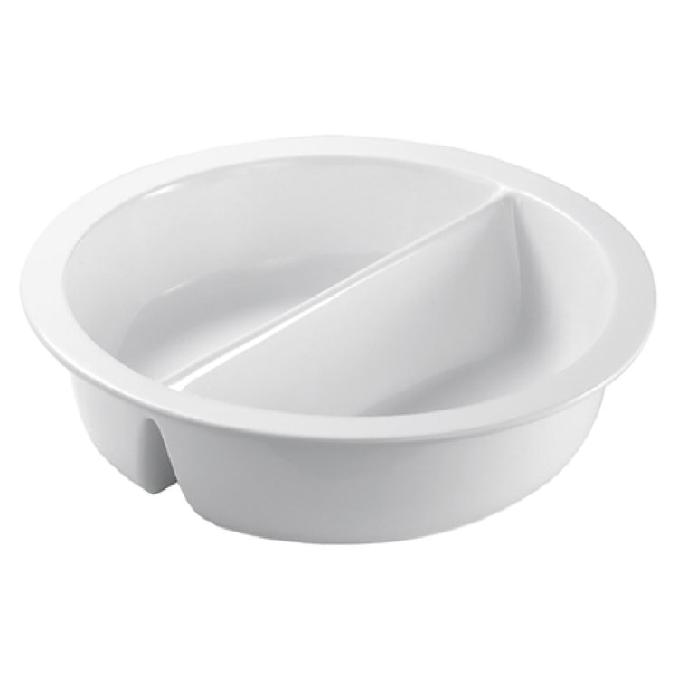 The Steelite 5370S559 Insert - 3-1/4 Qt. 12-3/4" X 2-1/2" is a versatile component designed specifically for the Indux Chafer 5370S554, ensuring compatibility and optimal performance in high-demand buffet settings. This round, divided insert is made from durable porcelain, making it a robust choice for food service environments that require both functionality and aesthetic appeal. The 3-1/4 quart capacity provides ample space for serving various dishes, while the dimensions of 12-3/4 inches in diameter and 2-1/2 inches in height make it an ideal fit for a range of culinary presentations. The divided design allows for the convenient separation of food items, enhancing the dining experience by offering multiple options within a single service piece. As a stock item from WNK Buffet, this insert is packed individually, ensuring its availability and ease of use. Its construction emphasizes both practicality and elegance, serving as a reliable and stylish solution for catering professionals, event planners, and hospitality venues seeking to elevate their buffet offerings with high-quality serveware. The Steelite 5370S559 Insert is a testament to the thoughtful design and premium materials that cater to the diverse needs of the food service industry.