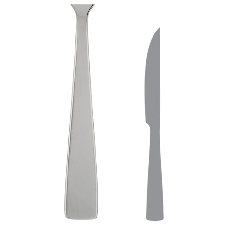The Steelite 5502J056 Steak Knife 8-3/4" solid handle is a meticulously crafted piece, embodying precision and durability suitable for various dining environments. Manufactured by Steelite International, a leader in cutlery, this steak knife is part of the renowned La Tavola Lounge collection. It boasts an 8-3/4 inch length, providing a balanced and comfortable grip for users, enhancing the dining experience whether in a bustling restaurant or a quiet home setting. The knife's solid handle is designed for ergonomic handling, reducing fatigue during extended use. Made from 13/0 stainless steel, it ensures longevity and resistance to corrosion, maintaining its sharpness over time and through various cutting tasks. This composition underscores its suitability for high-volume commercial kitchens where durability and quality are non-negotiable. The Steelite 5502J056's design and material make it an asset in both upscale dining establishments and casual dining settings, where consistent performance is key. The knife's sleek and modern aesthetic aligns with contemporary dining trends, making it an appealing choice for chefs and restaurateurs looking to enhance their tableware collections with reliable and elegant cutlery. This product is a stock item, ensuring easy availability for immediate culinary needs.