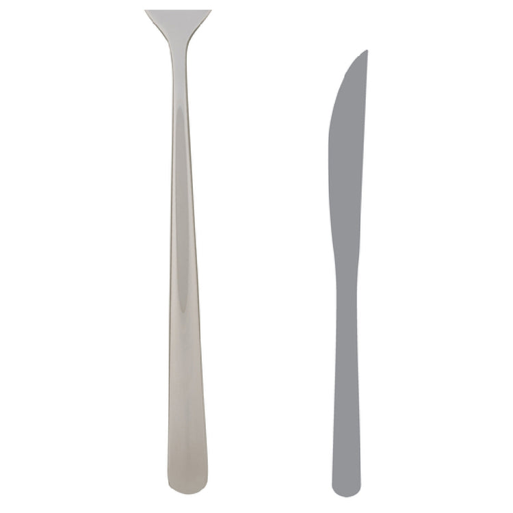 The Steelite 5507J056 Steak Knife 9" Solid Handle is meticulously crafted for industry professionals and discerning consumers alike. This steak knife boasts a 9-inch length, ensuring a precise cutting experience, ideal for enjoying perfectly prepared steak dishes. Its solid handle design provides a comfortable and secure grip, enhancing user confidence during use. Manufactured from high-quality 13/0 stainless steel, this knife is part of the prestigious La Tavola Fusion collection, which is renowned for its durability and sophisticated aesthetic. As a stock item from Steelite International, this knife embodies both functionality and elegance, making it suitable for upscale restaurants, catering services, and home dining enthusiasts who prioritize excellence in their tableware. The 13/0 stainless steel composition not only resists corrosion and maintains sharpness but also adds a touch of modern refinement to any dining setup. Perfect for establishments aiming to elevate their dining experience, the Steelite 5507J056 Steak Knife exemplifies enduring quality and stylish design, serving as a testament to Steelite International's commitment to exceptional craftsmanship and innovation in cutlery solutions.