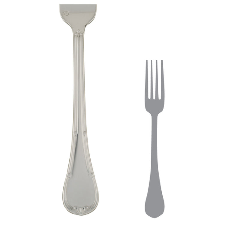 The Steelite 5513J023 Dessert Fork 7-1/4" 18/10 Stainless Steel is a meticulously crafted utensil that embodies elegance and functionality, making it a distinguished choice for dining establishments and hospitality settings. Measuring at a length of 7-1/4 inches, this dessert fork is crafted from premium 18/10 stainless steel, ensuring durability and resistance to corrosion while offering a polished and sophisticated appearance. The Steelite 5513J023 is part of the La Tavola Lucia collection, a range renowned for its contemporary design and superior craftsmanship. This dessert fork is a stock item, reflecting its consistent demand and popularity in various settings. Its design complements both modern and traditional table settings, appealing to a diverse range of dining scenarios from upscale restaurants to casual cafes. The fork's balance and weight are optimized for comfortable handling, enhancing the dining experience for patrons. This piece of cutlery not only serves its functional purpose effectively but also contributes to the aesthetic appeal of table arrangements, making it an asset in any dining environment. Its high-quality material and design are suited for establishments seeking to provide an elevated dining experience through distinctive tableware. The Steelite 5513J023 is a testament to refined dining and exceptional quality.
