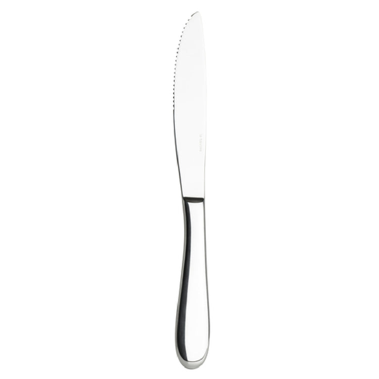 The Steelite 5516J058 Steak Knife is a precisely crafted utensil, measuring 9-1/2 inches in overall length (OAL) with a 5-inch blade, ideal for professional culinary environments and home kitchens seeking superior performance. This knife is part of the LaTavola Charme collection, renowned for its blend of elegance and functionality. Forged from 18/10 stainless steel, the Steelite 5516J058 ensures exceptional durability and resistance to rust and corrosion, promising long-lasting use. The precision-forged blade provides a sharp edge for efficient and effortless cutting of steak and other meats, making it a versatile tool in any dining setting. The Steelite 5516J058 is not only a stock item but also a testament to quality craftsmanship, making it suitable for a range of market segments, from fine dining establishments to casual eateries and households valuing premium cutlery. Its sophisticated design and technical attributes highlight the knife's unique value proposition, bridging aesthetic appeal with practical performance, essential for those who prioritize both in their culinary tools.