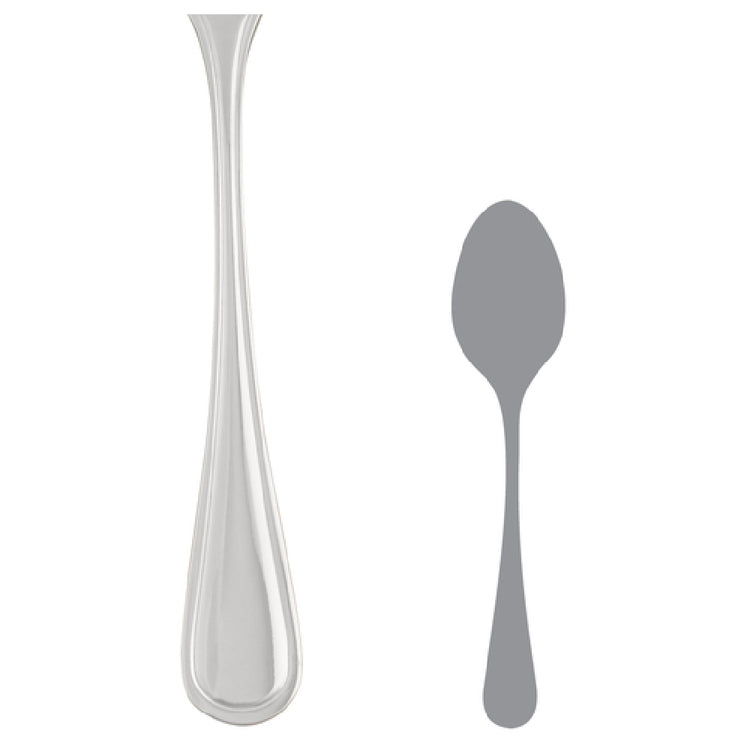 The Steelite 5700SX003 Dessert/Soup Spoon is a versatile utensil measuring 7-1/4 inches, designed with an oval bowl to enhance both aesthetic appeal and functional use. Crafted from 18/10 stainless steel, this spoon exemplifies superior durability and resistance to rust, making it a valuable addition to any dining establishment. Part of the renowned Folio Flatware collection, the Montecito design reflects a blend of contemporary elegance and practicality, catering to a variety of culinary settings. Previously branded under Cortland Silversmith, this spoon continues to uphold a tradition of quality manufacturing. The high-grade stainless steel ensures a lasting shine and resilience, catering to the needs of both high-end restaurants and casual dining venues. Its precise dimensions make it suitable for serving both desserts and soups, providing flexibility and efficiency in table service. Whether used in a bustling bistro or a formal dining room, the Steelite 5700SX003 Dessert/Soup Spoon stands out for its meticulous craftsmanship and adaptability, offering a refined dining experience to patrons across different market segments within the hospitality industry.