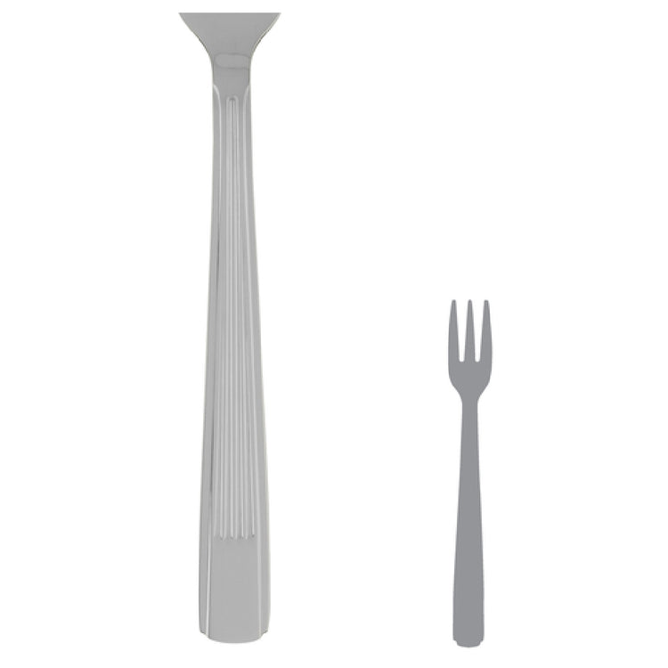 The Steelite 5706SX025 Cocktail Fork 5-3/8" - 18/0 Stainless Steel is a meticulously crafted utensil from the Varick Flatware collection, formerly branded under Cortland Silversmith, designed to enhance dining experiences across various market segments. Measuring precisely 5-3/8 inches, this cocktail fork combines practicality with style, ideal for both casual and formal settings. Constructed from 18/0 stainless steel, it is engineered for durability and resistance to corrosion, ensuring longevity and maintaining its sleek appearance over time. This high-grade stainless steel composition means the fork is ideal for high-volume establishments like restaurants and catering services where both durability and aesthetic appeal are crucial. Its design complements a wide array of table settings, making it a versatile choice for event planners and hospitality businesses looking to elevate their service presentation. As a stock item, it provides consistency and reliability to supply chains, accommodating the needs of businesses that require scalable solutions without compromising on quality. The Steelite 5706SX025 Cocktail Fork is not just a dining tool; it is a testament to functional elegance and a strategic asset for businesses prioritizing both form and function in their culinary presentation.