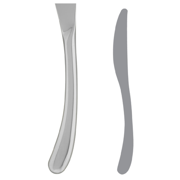 The Steelite 5709SX042 Dinner Knife 9-1/2" Long 13/0 Stainless Steel is a remarkable utensil crafted to meet the standards of both professional and home dining environments. With its precise length of 9-1/2 inches, this dinner knife is part of the distinguished Varick Flatware collection, specifically in the Moon series. The knife is manufactured from 13/0 stainless steel, a composition known for its resilience and resistance to rust and staining, making it a cost-effective choice for volume-driven settings. Its sturdy construction offers a long-lasting solution perfect for restaurants, catering services, and hospitality venues where durability and performance are paramount. Originally branded under Cortland Silversmith, this dinner knife retains a classic aesthetic appeal, making it equally suitable for upscale dining experiences as well as everyday use. As a stock item from Steelite International, it ensures consistent availability for large-scale purchasing requirements. The Steelite 5709SX042 Dinner Knife brings a harmonious blend of quality, functionality, and style, meeting the diverse needs of the food service industry with its robust specifications and elegant design, crafted to enhance the dining experience across various segments.