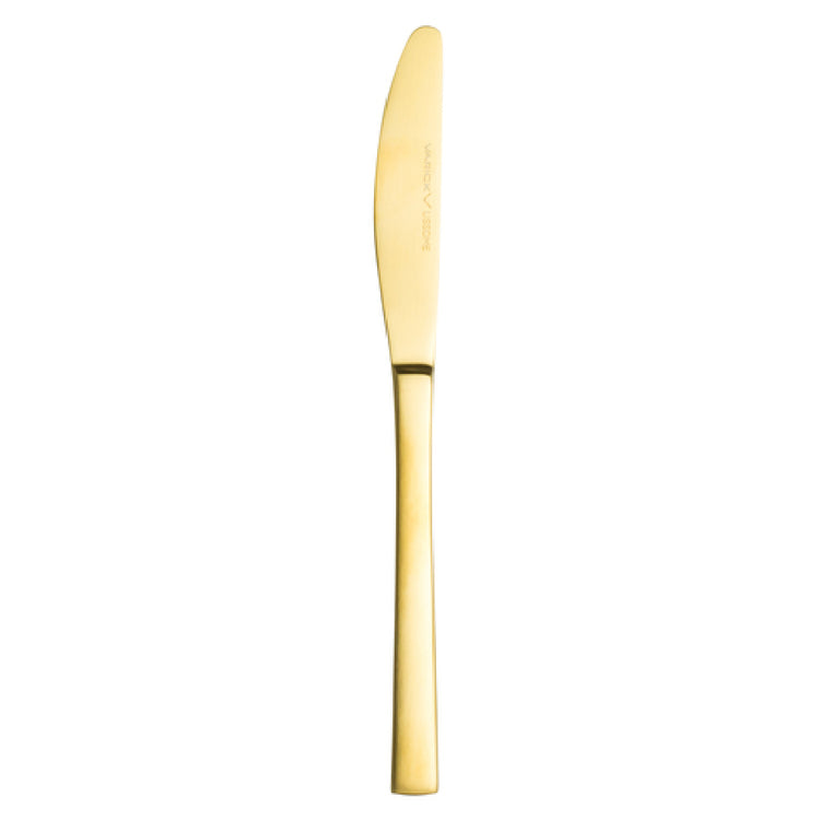 Steelite 5717GP045 Butter Knife 7-1/4" 13/0 Stainless Steel is a meticulously crafted utensil that embodies both elegance and functionality, making it a distinguished choice for culinary professionals and home enthusiasts alike. This butter knife is part of the Varick Flatware collection, specifically within the Lissome line, known for its sleek and modern design. Measuring 7-1/4 inches, it provides an ideal length for versatile use, from spreading butter to serving delicate spreads. The knife is constructed from 13/0 stainless steel, a material known for its magnetic properties, which ensures a durable and corrosion-resistant product that retains its aesthetic appeal over time. The brushed gold finish adds a sophisticated touch, making it suitable for upscale dining settings, while its stock item status ensures availability for large orders, catering to the demands of hospitality and catering industries. The Steelite 5717GP045 Butter Knife not only enhances table settings but also meets the rigorous demands of everyday use, providing a balance of beauty and practicality that complements a wide range of serving needs. Its compatibility with both traditional and contemporary tableware makes it a versatile addition to any flatware collection, elevating the dining experience with its refined presence.