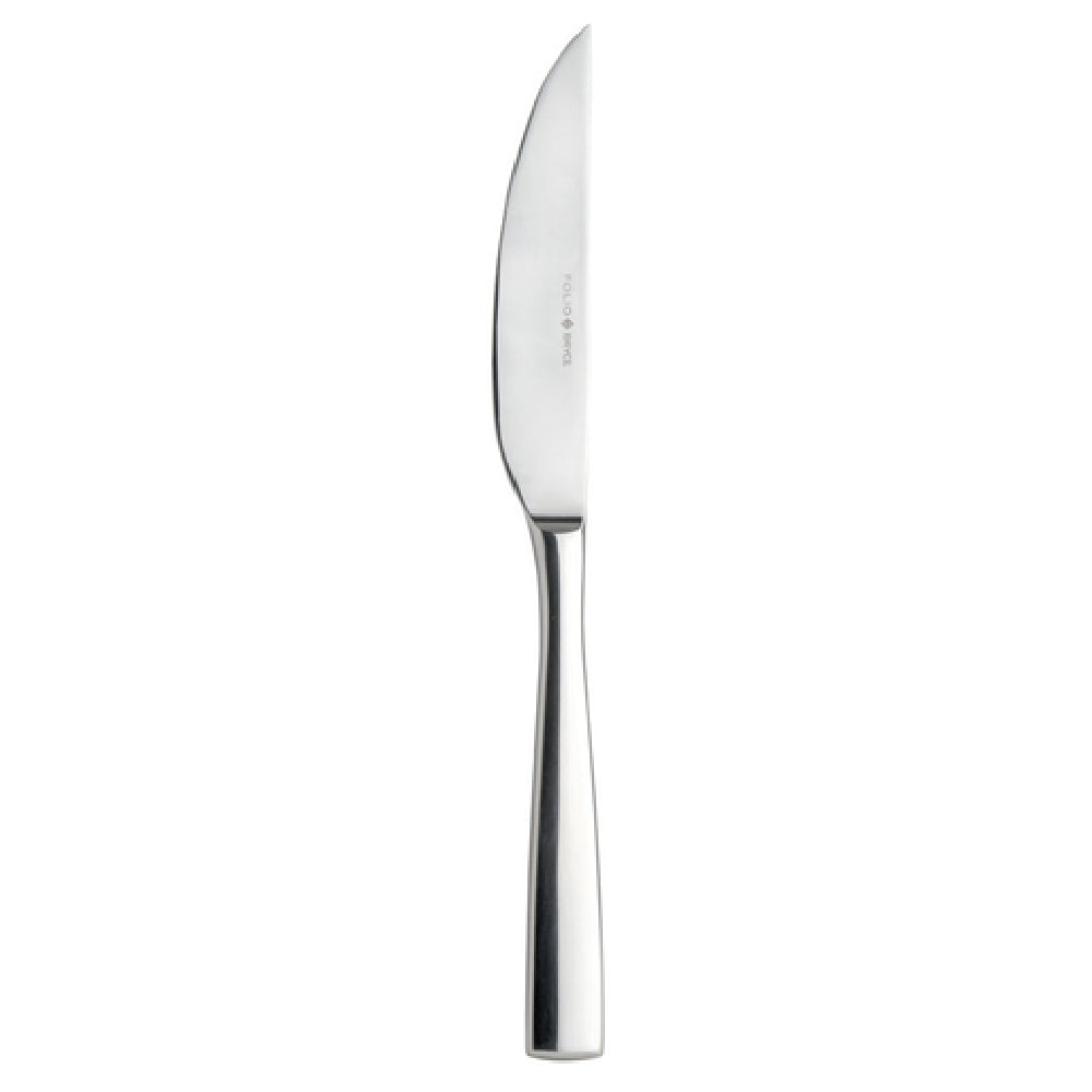 The Steelite 5731SX056 Steak Knife is a precision-crafted culinary tool, featuring a 4-1/2" serrated blade that ensures effortless cutting through various textures of meat, making it a staple in both home kitchens and professional dining establishments. With an overall length of 9-1/4", this steak knife offers a balanced feel and optimal handling for precise cutting performance. Constructed from 13/0 stainless steel, it combines durability and resistance to corrosion, providing a reliable option for restaurants and catering services seeking longevity in their flatware. Part of the Folio Flatware collection, the Bryce design brings an element of sophistication to any dining setting. As a stock item, the Steelite 5731SX056 Steak Knife is readily available to meet the demands of high-volume food service operations, while its premium material composition and elegant design appeal to upscale dining environments. This steak knife's technical specifications and aesthetic appeal make it a versatile choice for various market segments, including hospitality, culinary schools, and catering companies, ensuring a seamless integration into diverse culinary contexts.