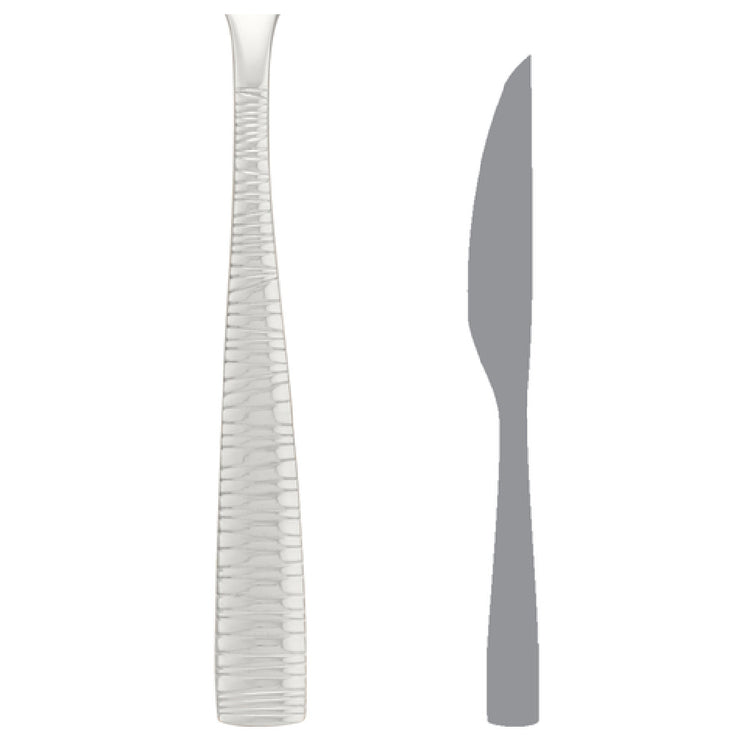 The Steelite 5732SX056 Steak Knife 9-1/4" is crafted from 13/0 stainless steel, ensuring a durable and high-quality dining tool suitable for any kitchen or restaurant setting. As part of the Folio Flatware collection, this knife embodies a sophisticated design reflecting the Pirouette pattern, making it a visually appealing choice for formal dining occasions. The 9-1/4" length of the knife provides the perfect balance for effortless slicing, enhancing both user experience and presentation. Its stainless steel composition offers excellent resistance to corrosion and staining, contributing to its longevity in high-demand environments. This steak knife is a stock item, ensuring consistent availability for food service establishments that require uniformity and reliability in their flatware collection. Whether utilized in upscale restaurants, catering events, or home dining, the Steelite 5732SX056 Steak Knife combines aesthetic elegance with functional efficiency, catering to diverse markets within the hospitality industry. Its durable and refined construction makes it a valuable asset for enhancing the dining experience across various settings.