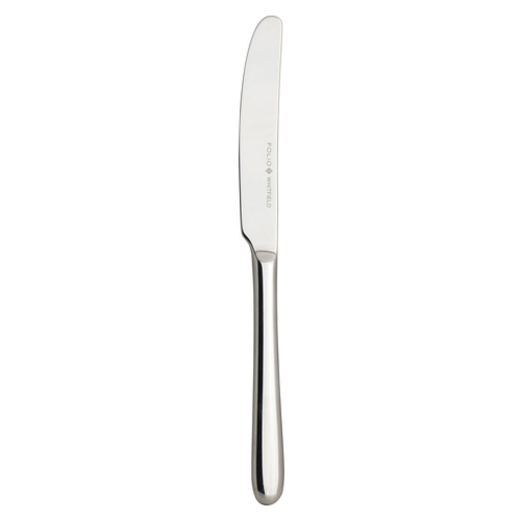 The Steelite 5746SX045 Butter Knife - 6-7/8" Stainless Steel is a premium utensil crafted for the discerning user who values both style and functionality. Made by Steelite International, this butter knife is part of the esteemed Folio Flatware collection, specifically the Whitfield line. The knife's 6-7/8 inch length is designed to provide a perfect balance between ease of use and elegance, making it an exemplary tool for spreading butter with precision and grace. Constructed from high-quality stainless steel, this butter knife ensures durability and resistance to corrosion, maintaining its polished appearance even with frequent use. The Steelite 5746SX045 Butter Knife's sleek design complements any table setting, whether in a fine dining restaurant or a casual home environment, offering versatility in various dining scenarios. Its stock item status indicates that it is readily available for purchase, ensuring that customers can easily enhance their existing flatware collection without delay. Ideal for hospitality, catering, and home dining sectors, this butter knife combines aesthetic appeal with practical features, making it a reliable choice for those who seek to add a touch of sophistication to their dining experience.