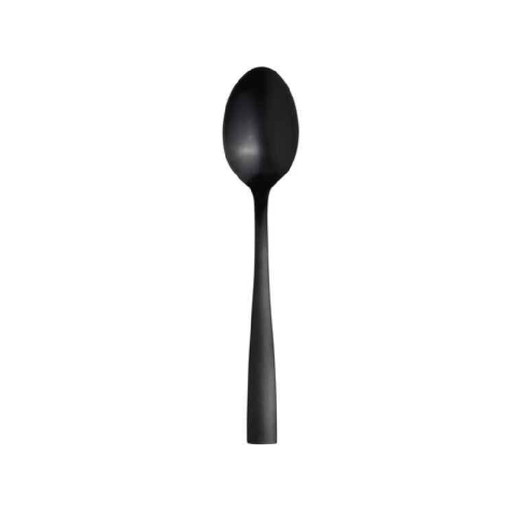 Steelite 5762SX003 Oval Bowl Soup/Dessert Spoon 7-7/8" - 18/10 Stainless Steel is a distinguished piece of cutlery crafted to meet the demands of both professional and home dining settings. Made from premium 18/10 stainless steel, this spoon ensures robust durability and resistance to corrosion, maintaining its pristine look over extended use. The spoon features an elegant oval bowl design that is well-suited for enjoying soups and desserts, providing an excellent balance of form and function. Measuring 7-7/8 inches, the spoon offers a comfortable grip and a perfect size for versatility across various dining experiences. The PVD black vintage finish adds a touch of sophistication and modern flair, making it an attractive choice for upscale dining environments. Part of the Folio Flatware collection, this spoon is available in a minimum case quantity of 12 per case, packed by the dozen, making it an ideal choice for restaurants, catering businesses, and hospitality sectors looking to enhance their table setting with stylish and durable flatware options. As a stock item, it ensures ready availability for seamless incorporation into any dining setup, offering a perfect blend of practicality and aesthetic appeal for diverse market segments within the culinary industry.