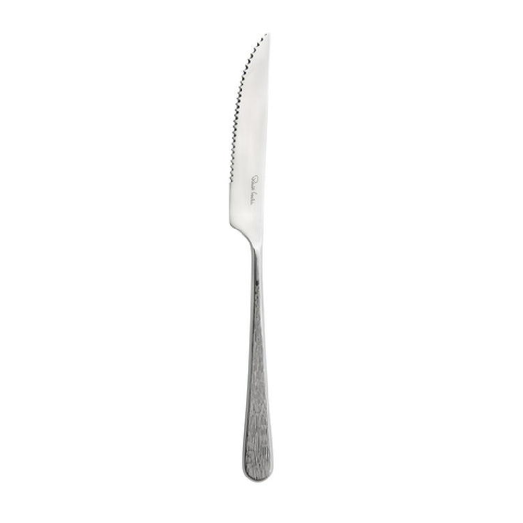 The Steelite 6029SX056 Steak Knife is a premium cutlery piece measuring 9-1/8 inches, crafted from 18/10 stainless steel. This product prominently features the Robert Welch Skye design, which is renowned for its modern aesthetic and ergonomic handling. The use of 18/10 stainless steel ensures a high level of durability and resistance to corrosion, making this steak knife an excellent choice for both home use and professional culinary environments. Its length of 9-1/8 inches is particularly suited for cutting through thick cuts of meat with precision and ease. As a stock item from Steelite International, the 6029SX056 model provides reliability and uniformity, which is crucial for establishments that prioritize consistent quality in their table settings. This steak knife not only enhances the dining experience with its functional design but also adds a touch of elegance to any table setting, catering to various segment markets such as upscale restaurants, catering services, and discerning home chefs who value quality and style in their flatware. The Steelite 6029SX056 represents a synthesis of aesthetic appeal and practical performance, making it a versatile and valuable addition to any cutlery collection.