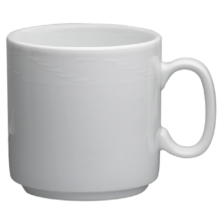 The Steelite 61131ST0271 Mug 10 Oz. with Handle is a versatile addition to any dining setting, designed for both practicality and elegance. With a capacity of 10 ounces, this mug is perfectly sized to serve a generous portion of beverages. It features a sturdy handle, ensuring a comfortable grip for every user. This mug is stackable, allowing for efficient storage and space-saving when not in use, making it ideal for busy environments like cafes, restaurants, or even in the home. Made from high-quality porcelain under the prestigious Royal Porcelain brand, this mug guarantees durability and a refined aesthetic. The embossed design adds a touch of sophistication, enhancing the presentation of your table setting. Known as the Camille, this mug is a non-stock item, emphasizing its exclusivity and bespoke nature. Available in a case packed by 3 dozen, it caters to establishments requiring larger quantities without compromising on style or quality. The Steelite 61131ST0271 Mug is perfect for various market segments, including hospitality, catering, and home use, due to its blend of functionality, durability, and elegant design.