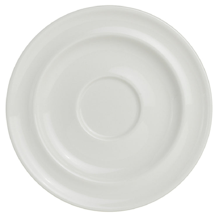 The Steelite 62101ST0659 A.D. Saucer, measuring 4-7/8 inches in diameter, is an exemplary piece of dinnerware crafted with precision to meet the demands of various market segments within the hospitality and foodservice industries. This round saucer is meticulously designed to fit seamlessly with the 62101ST0664 cup, ensuring a cohesive table presentation. Made from Maxadura porcelain, a material renowned for its durability and quality, this saucer boasts a scratch and mark resistant glaze, making it ideal for high-traffic environments such as restaurants, hotels, and catering services. The Royal Porcelain Cadence collection, to which this saucer belongs, stands out for its elegance and resilience. As a stock item, the Steelite 62101ST0659 is efficiently packed in cases of three dozen, optimizing storage and distribution logistics. Its robust construction not only enhances its longevity but also maintains its pristine condition, ensuring a lasting impression on guests and patrons. With its superior materials and thoughtful design, the Steelite 62101ST0659 A.D. Saucer offers a reliable and stylish option for professionals seeking excellence in their tableware selections.