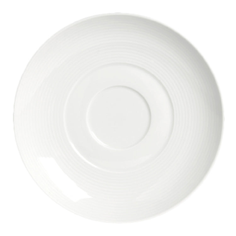 The Steelite 6300P175 Saucer 6-1/4" Dia. Round is a meticulously crafted porcelain saucer that exemplifies both elegance and functionality. Designed by Rene Ozorio under the Aura collection, this saucer is perfectly matched for use with the 6300P174 cup, showcasing a harmonious blend of style and utility. With a diameter of 6-1/4 inches, it provides ample space to accommodate a variety of cups and mugs, enhancing the presentation of your beverage service. The saucer comes packed in a case of two dozen, making it an efficient choice for high-volume settings such as restaurants, hotels, and catering services where consistency and quality are paramount. The use of high-quality porcelain ensures durability and a refined aesthetic, catering to both upscale dining environments and everyday hospitality needs. Steelite International's commitment to excellence is evident in the detailed design and practical application of this saucer, making it a reliable choice for different market segments within the food service industry. Whether for a casual café or a formal dining experience, the Steelite 6300P175 Saucer stands as a testament to sophisticated design and superior craftsmanship.